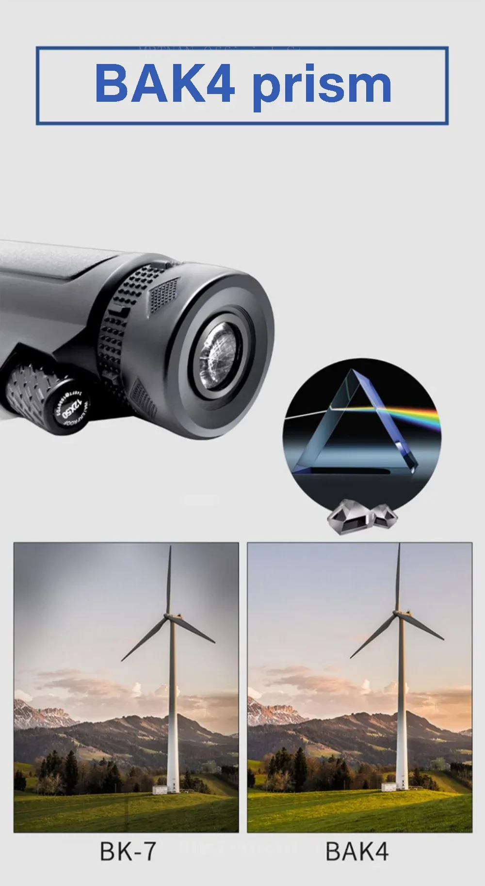 El monocular 12x50 cuenta con tecnología avanzada totalmente multicapa y una gran lente prisma BAK4, lo que garantiza imágenes de alto contraste y colores precisos.