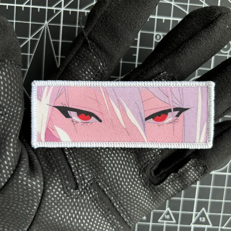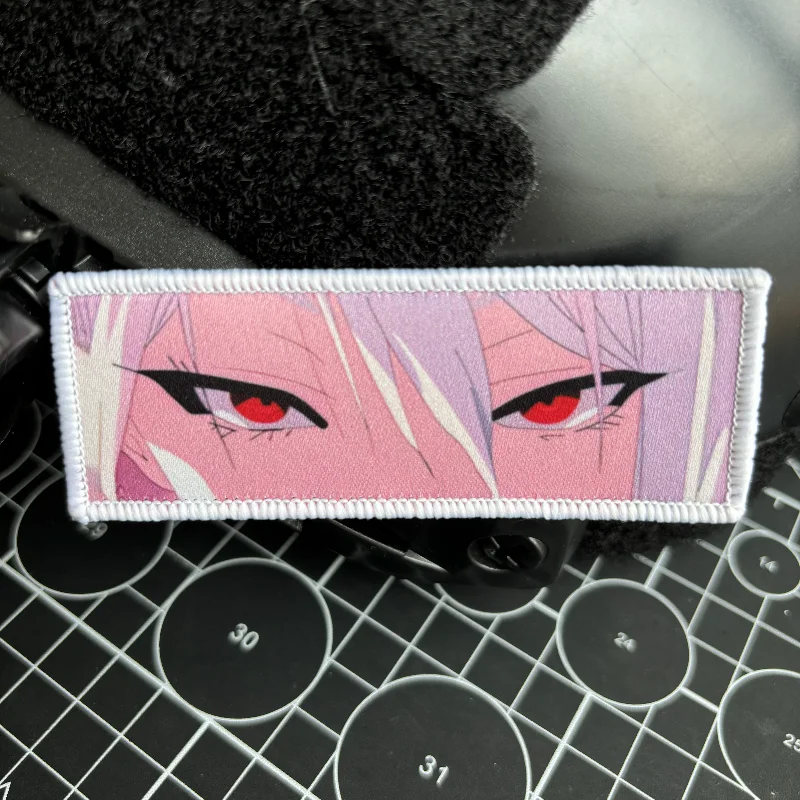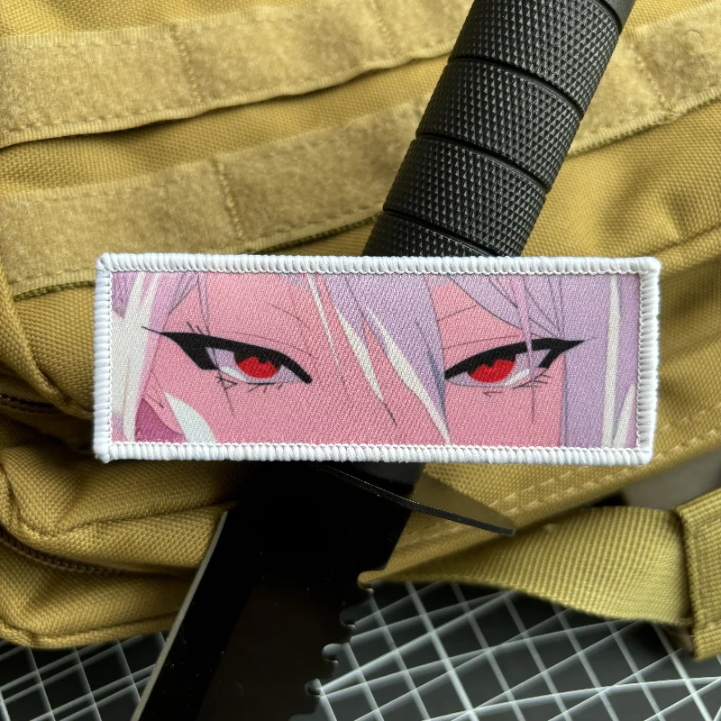 Power Eyes Moral Badge Anime Chainsaw Man Character Patch Hook and Loop Impresión de dibujos animados Tactical Military Backpack Sticker