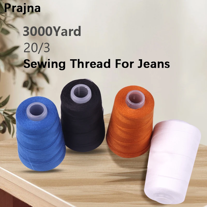 Prajna 1 carrete 20/3 3000 yardas de espesor hilo fuerte de poliéster para bolsos DIY hechos a mano, lienzo, vaqueros, hilo de coser a mano de tela Oxford