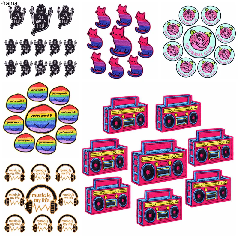 Prajna, 10 Uds., venta al por mayor, parche de Radio Rock, apliques de animales Hippie, parches bordados en ropa, parches DIY para pegatina de ropa