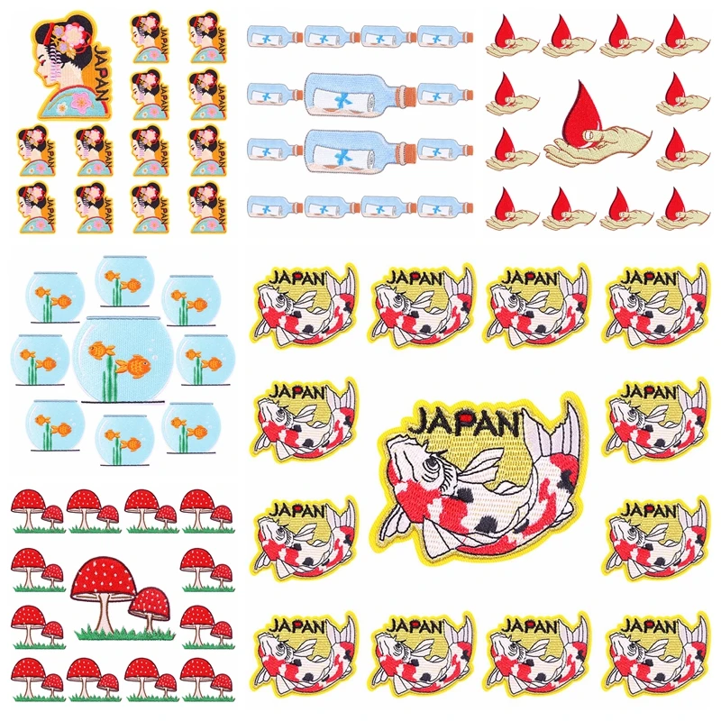 Prajna, 10 unids/lote, parches bordados de Anime japonés para ropa, parche de mujer japonés, parches para planchar para ropa, pegatina de dibujos animados DIY