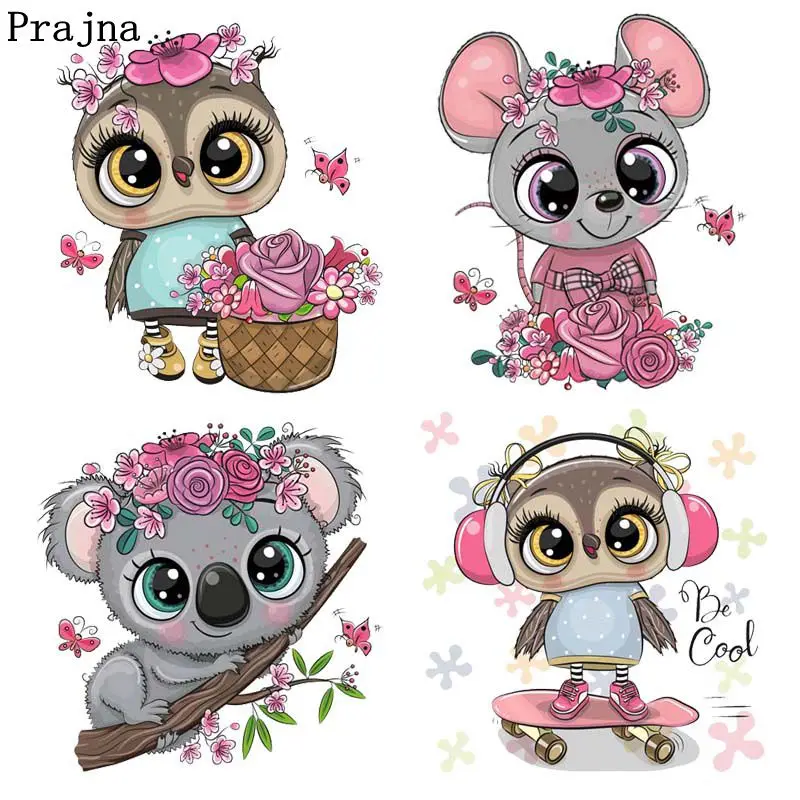 Prajna encantador Koala hierro en transferencias de calor vinilo transferencia térmica de calor parches de dibujos animados para ropa DIY pegatinas en ropa de bebé