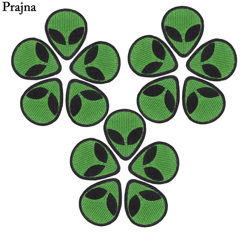 Parche de OVNI Prajna, parches de hierro alienígena de 10, pegatinas bordadas de cara verde para bolsa de vaqueros, adornos DIY, apliques al por mayor
