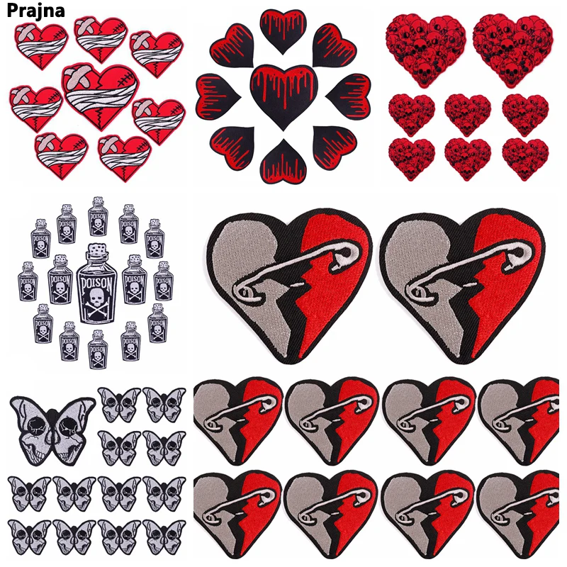 Prajna-parche bordado de calavera de amor, parche Punk de 10 piezas para ropa, parches de calavera de mariposa en la ropa, parches de planchado, pegatina DIY