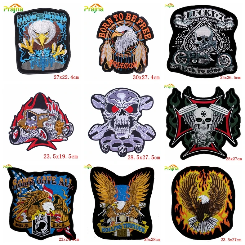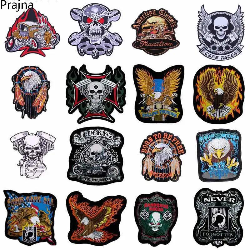 Prajna calavera negro apliques ropa parche bordado grande para ropa bordado Punk Rock parche hierro motorista moral tallo D