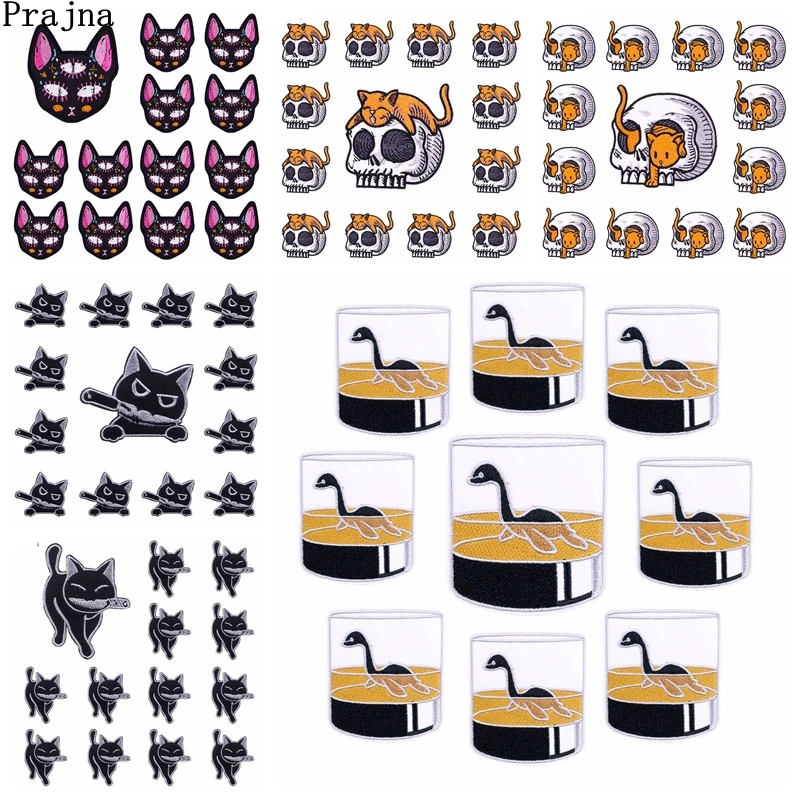 Prajna-parche bordado de gato Hippie, parches para planchar en la ropa, pegatinas, bolsos de animales de dibujos animados, apliques para ropa, 10 piezas