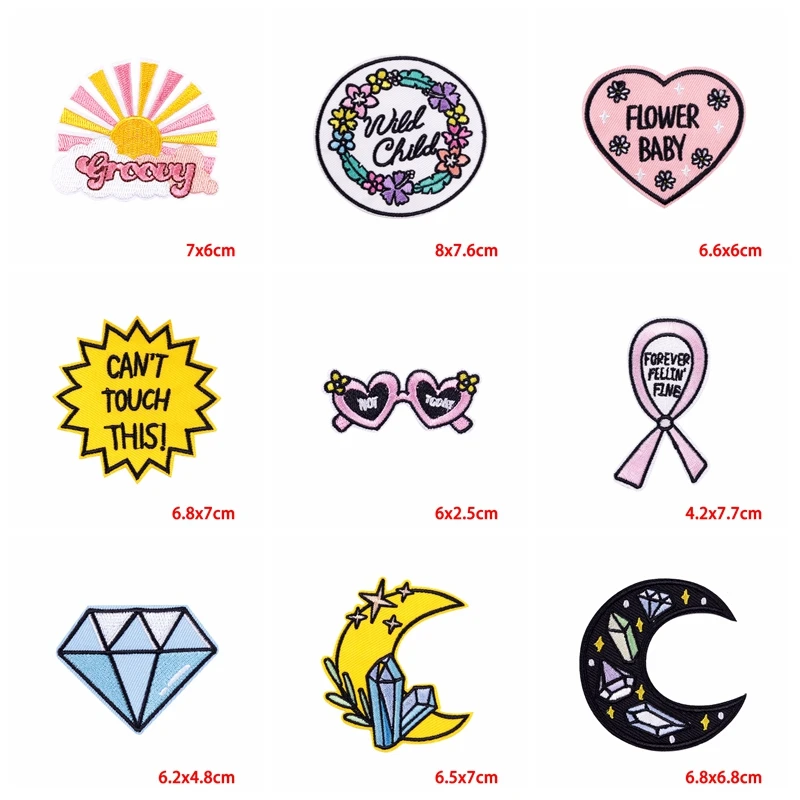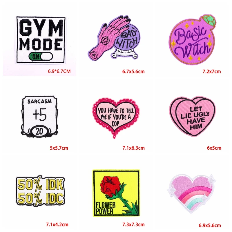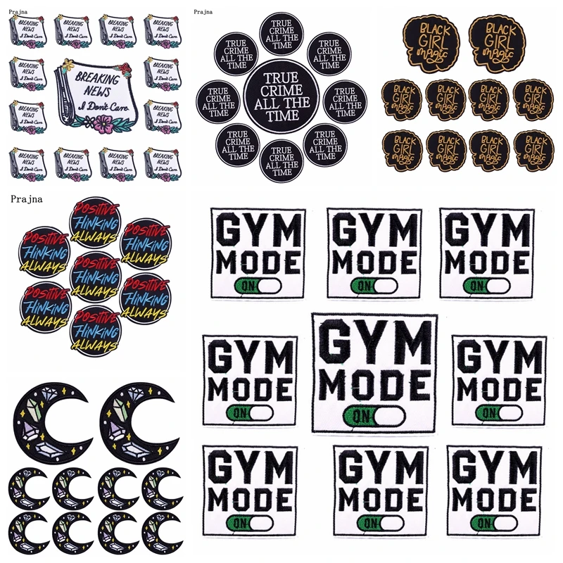 Prajna parche bordado de letras, parches termoadhesivos para ropa, apliques de chaqueta, Parche de dibujos animados, bricolaje, 10 unids/lote