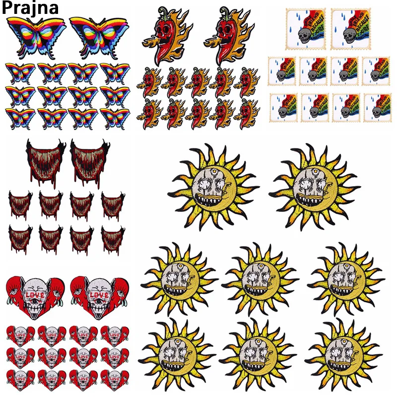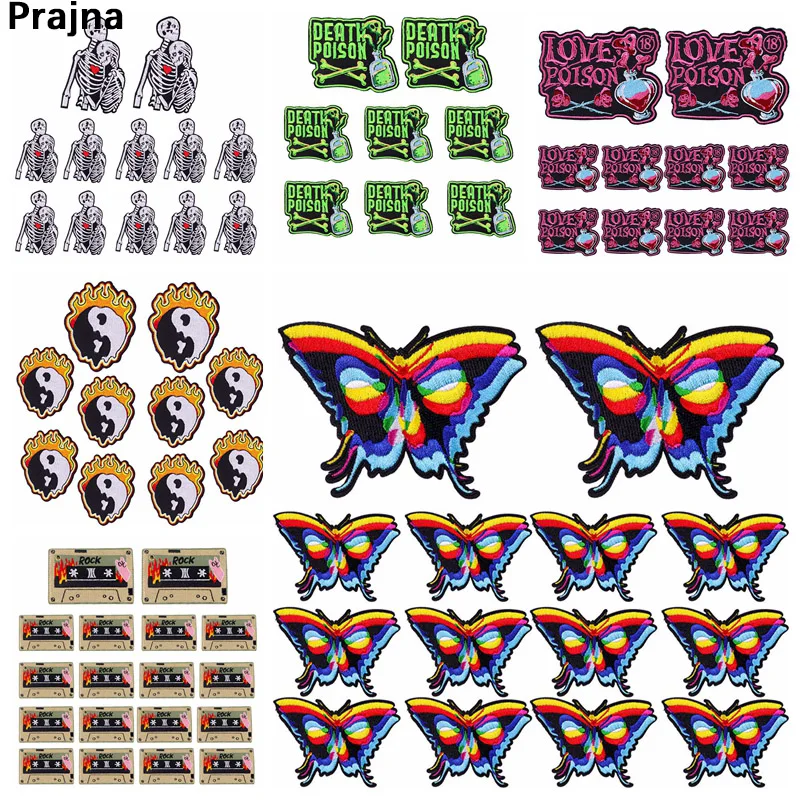 Prajna-Parche de calavera Punk, parches bordados de llama de mariposa para ropa, parches termoadhesivos en pegatinas para ropa, 10 unids/lote