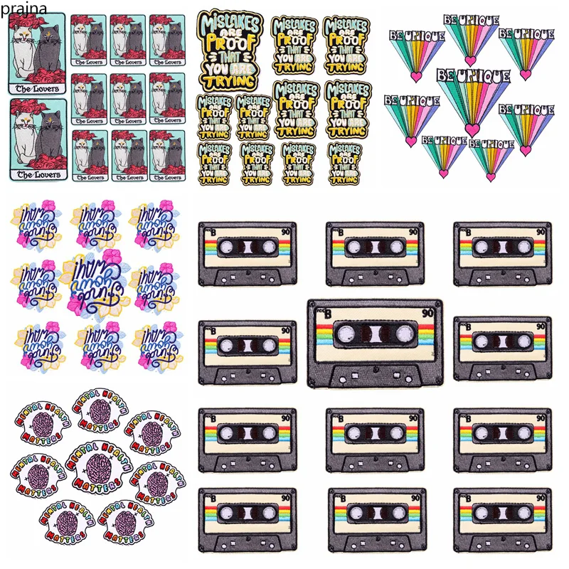 Prajna, 10 Uds., parches para planchar, parches bordados DIY con letras en la ropa, parches con apliques de Radio de dibujos animados para ropa, flores DIY