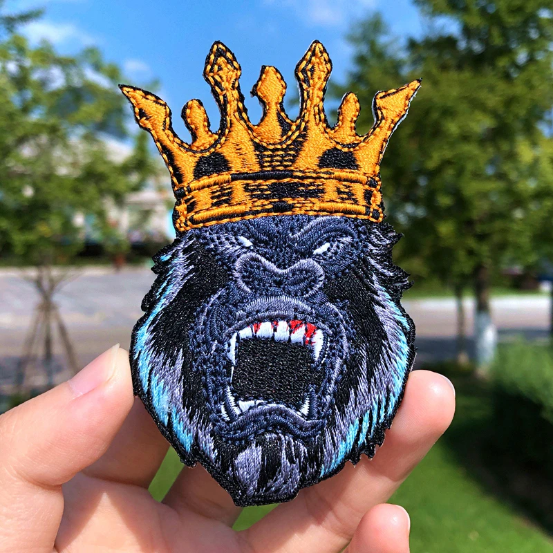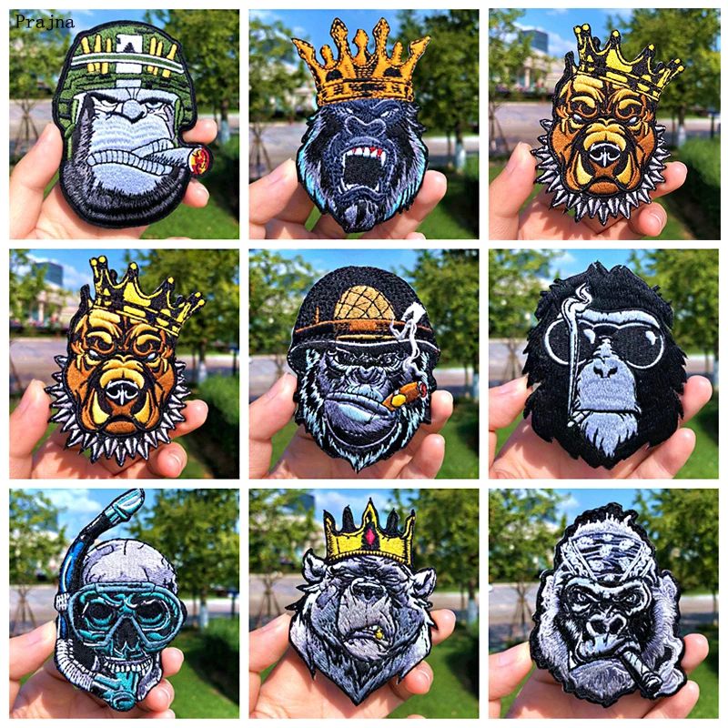 Prajna-parches bordados de orangután Punk para ropa, Calaveras, oso, Rey, perro, parches para planchar, rayas en chaqueta, ropa