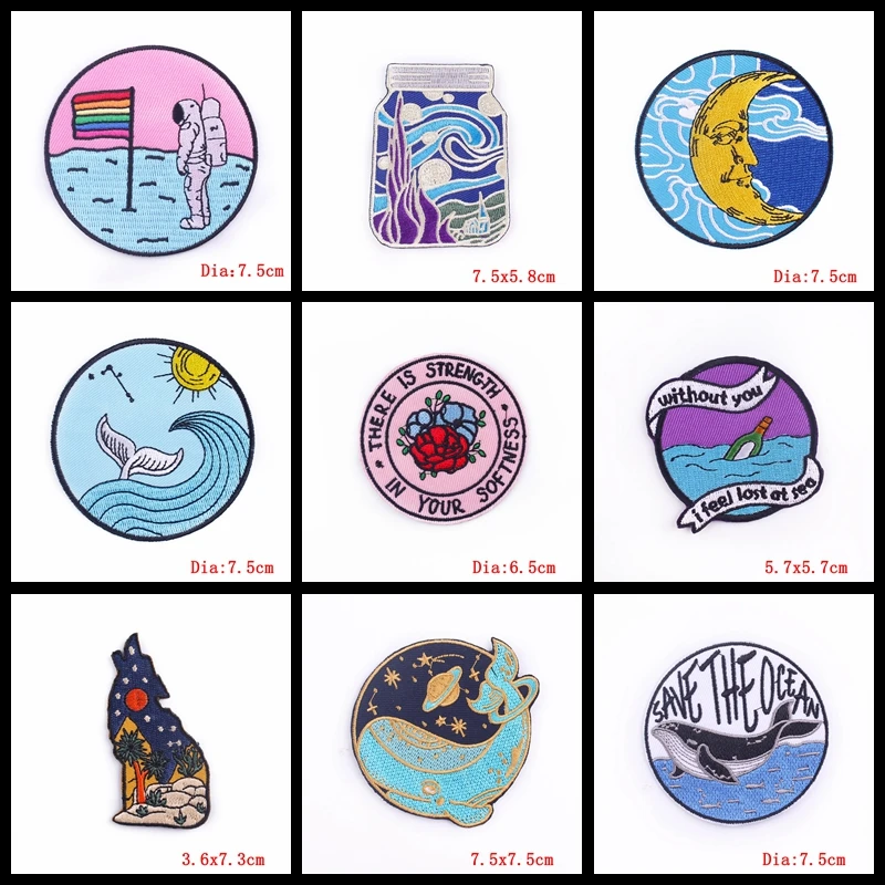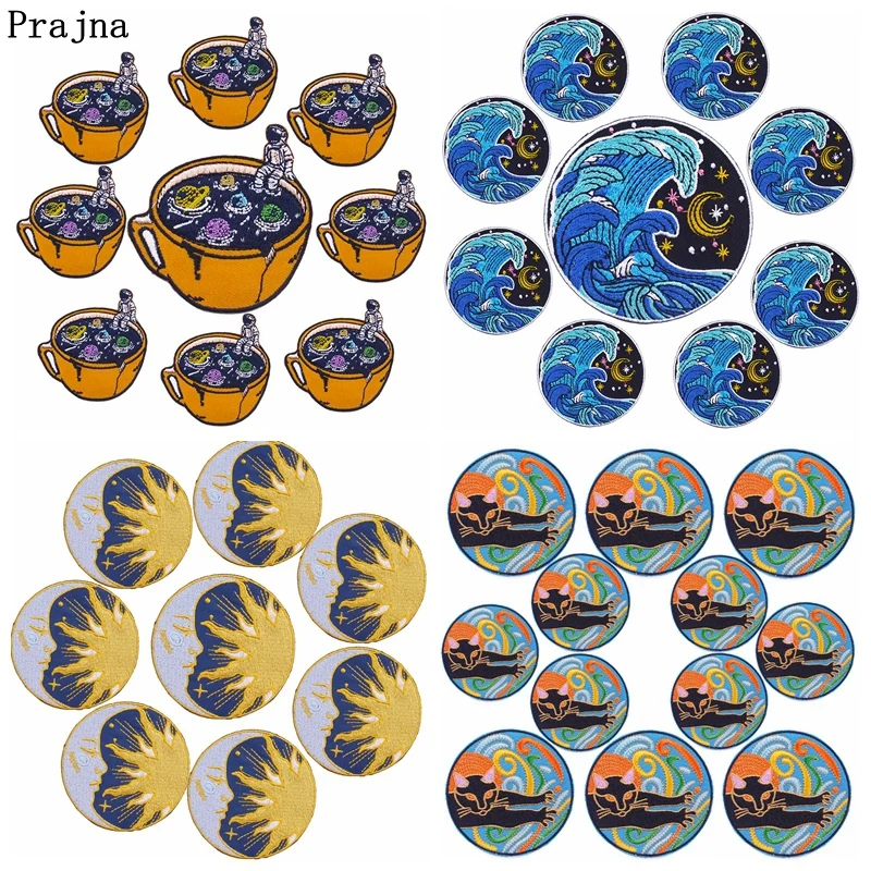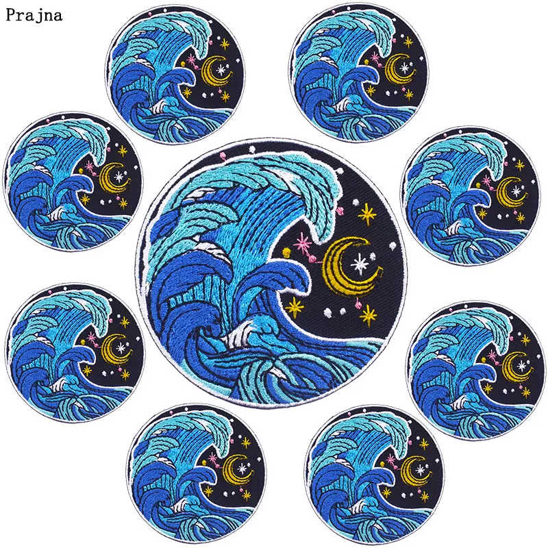 Prajna-Parches bordados de ondas de Van Gogh para ropa, parches para planchar, pegatinas para ropa, venta al por mayor de 10 por mayor