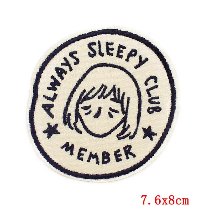Prajna-parches bordados para planchar, insignias de Always Sleepy Club, 10 piezas, para ropa, apliques de letras de dibujos animados, DIY