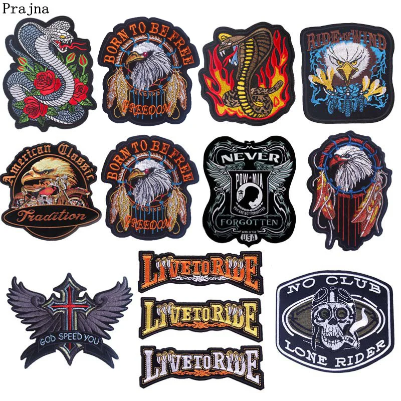 Prajna-parches bordados Punk Live to Ride, parches de calavera para ropa, pata de águila, parches para planchar para chaqueta, Jeans, rayas