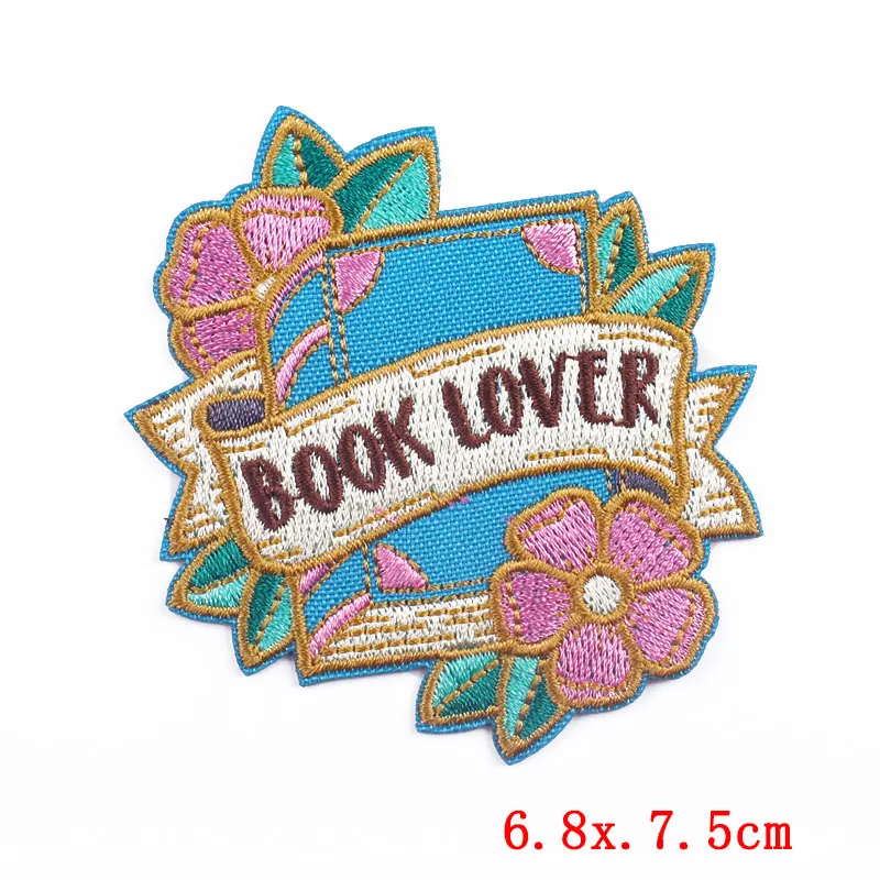Prajna 10, parches de letras para amantes de los libros en la ropa, parches bordados de hierro con flores de dibujos animados para ropa, insignias de dibujos animados