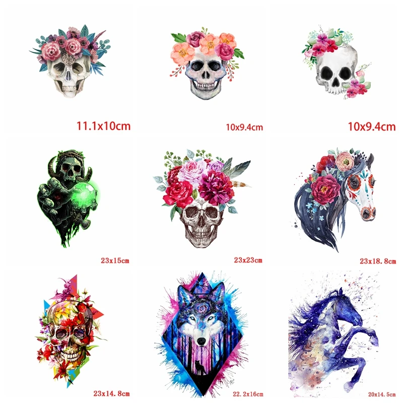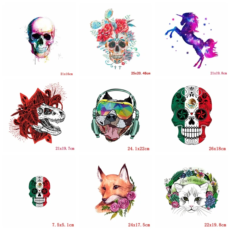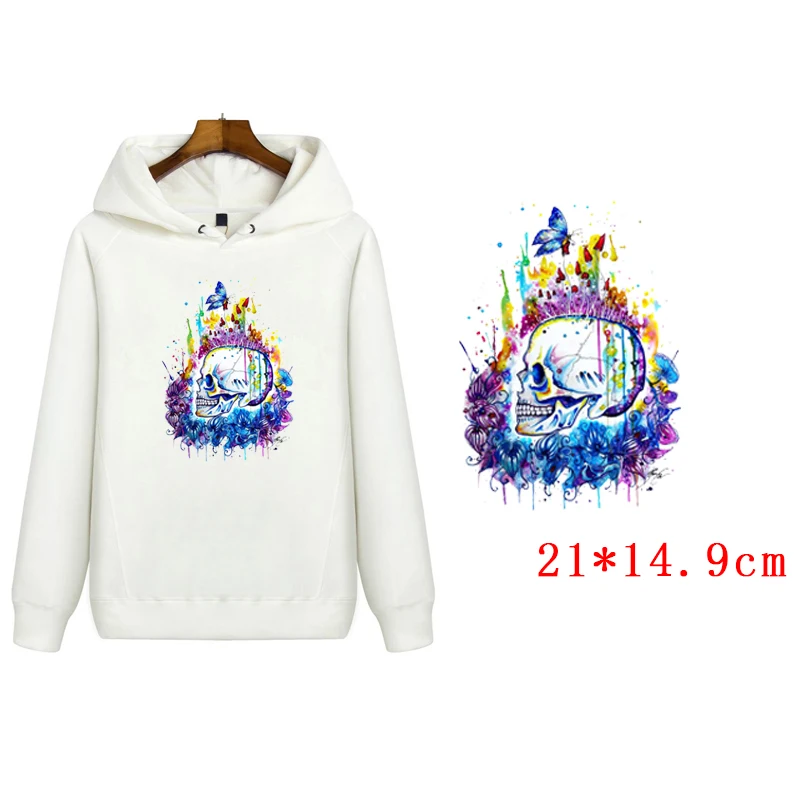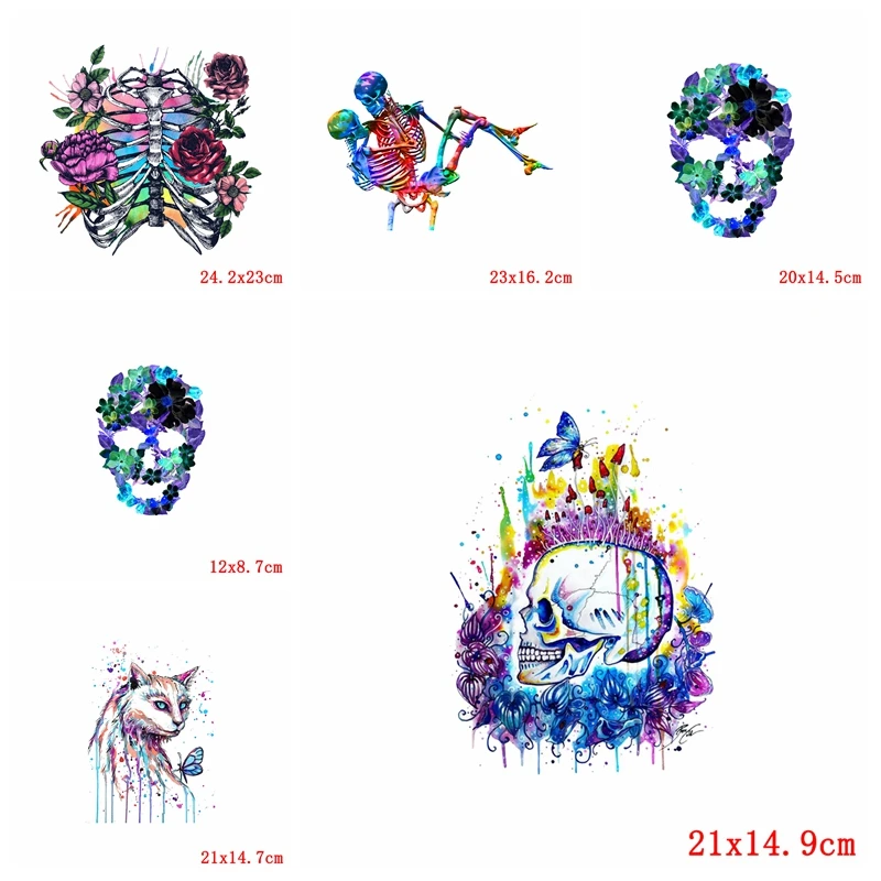 Parches de calavera de colores Prajna, parches de hierro para ropa, DIY pegatina, parche de calavera Punk, pegatina térmica de transferencia de calor en la ropa