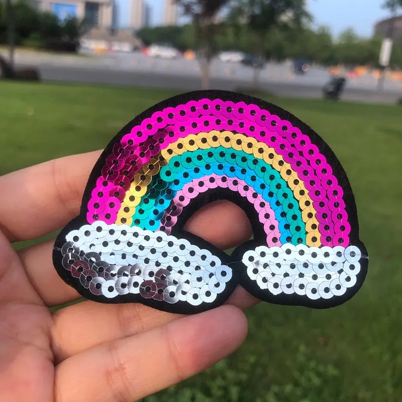 Prajna-Parches de lentejuelas de unicornio para niños, coloridos parches de arcoíris para planchar en la ropa, apliques de estilo de dibujos animados, insignia de ropa DIY