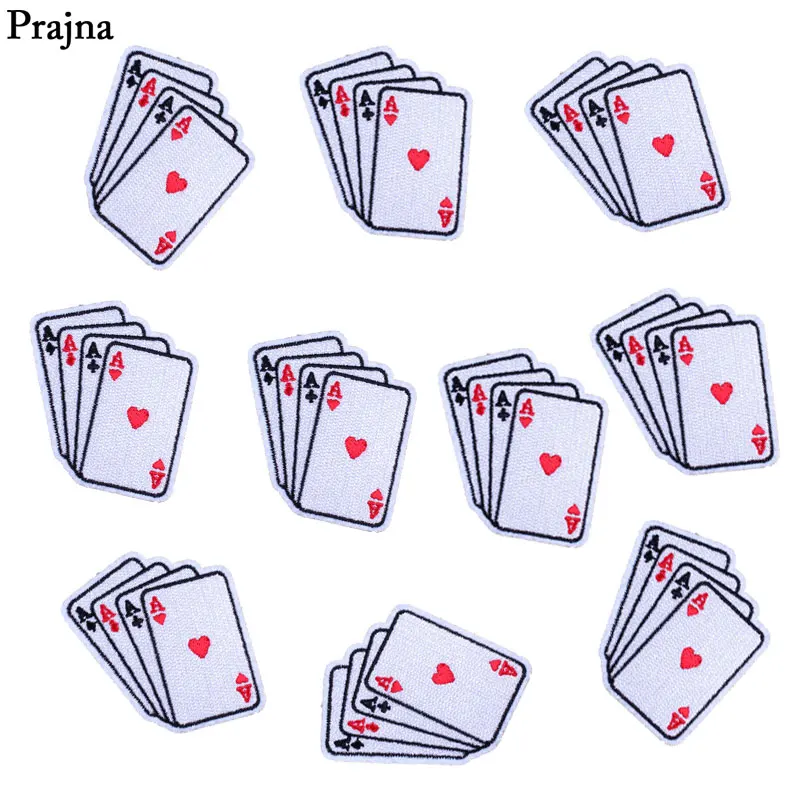 Prajna, venta al por mayor, parches de motocicleta de póquer de 10 piezas, corazón rojo, parche para planchar, insignias rosas Hippie para ropa, apliques, rayas vaqueras