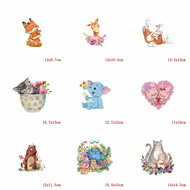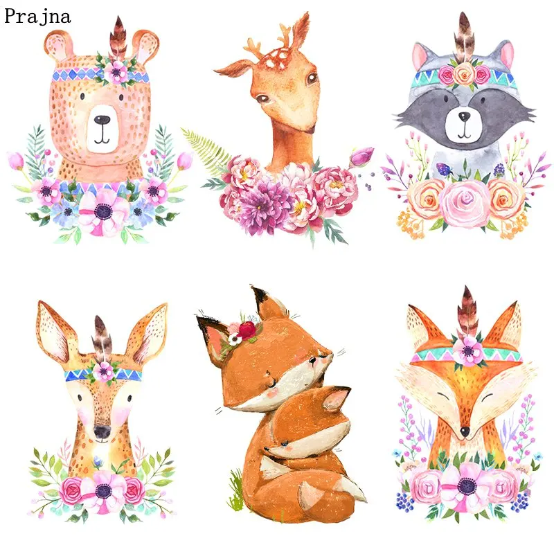Prajna Jungle Animal dibujos animados hierro en transferencias Vynil Transferencia de Calor parches térmicos para ropa zorro ciervo oso pegatinas de planchado MOQ:1 Tamaño: como se muestra en la imagen
