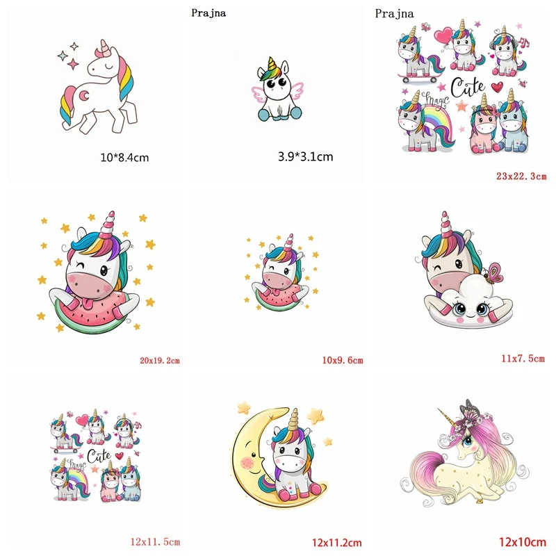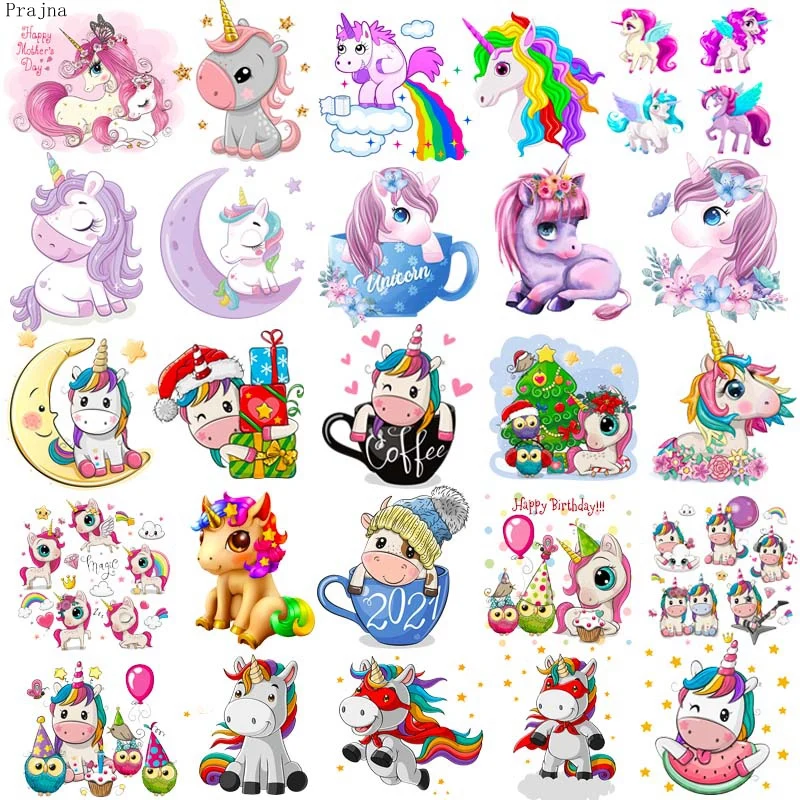 Prajna-Parches de unicornio para planchar en la ropa, parche de dibujos animados, transferencia de calor, pegatina térmica, lindo, transferencia de hierro