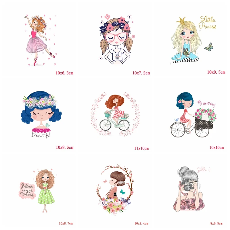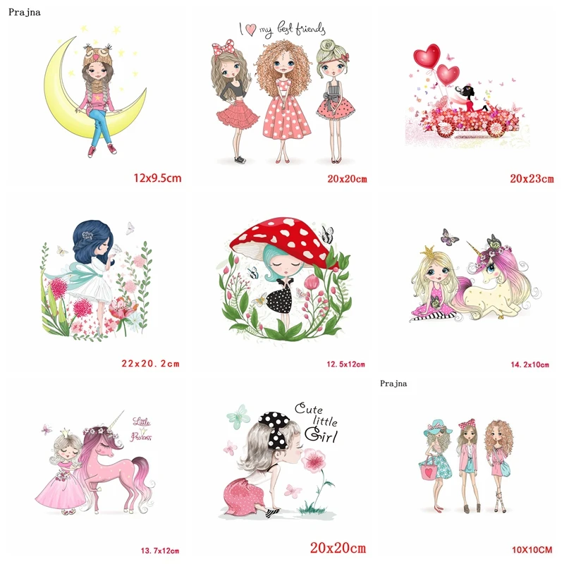 Serie Prajna de transferencias de hierro para niñas, lindas pegatinas para niñas en la ropa, pegatina de hierro de dibujos animados, Parche de PVC, insignia de aplicación DIY