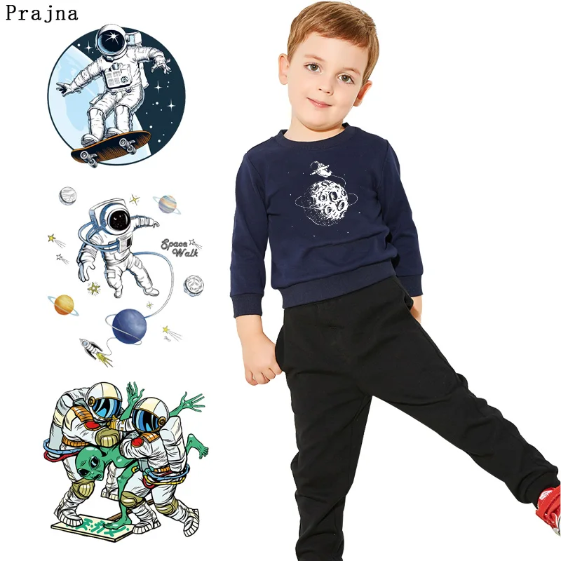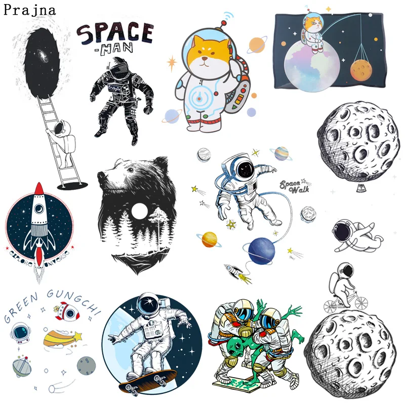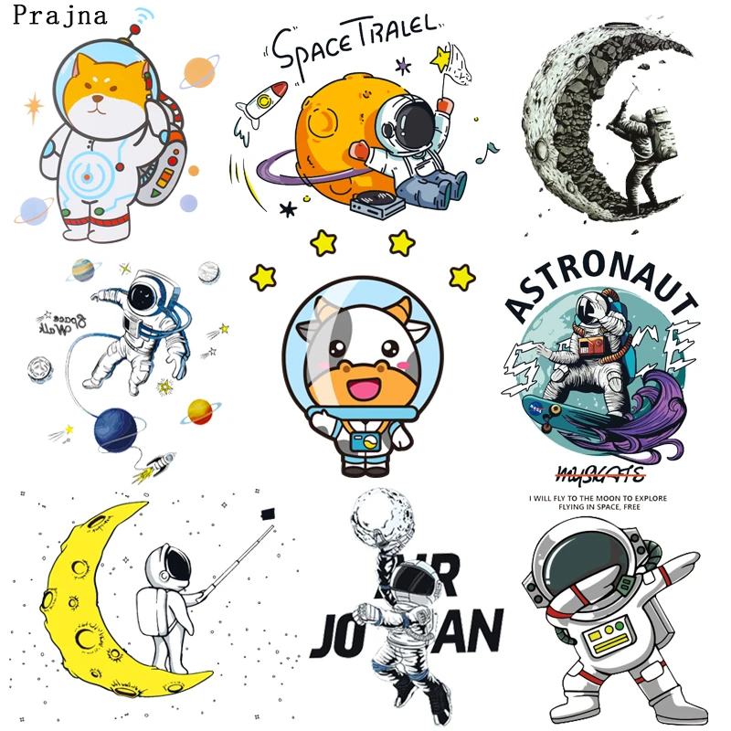 Prajna-pegatinas térmicas de astronauta espacial para ropa, parches de vinilo de transferencia de calor para ropa, camiseta para niños, apliques de Luna