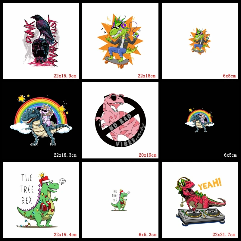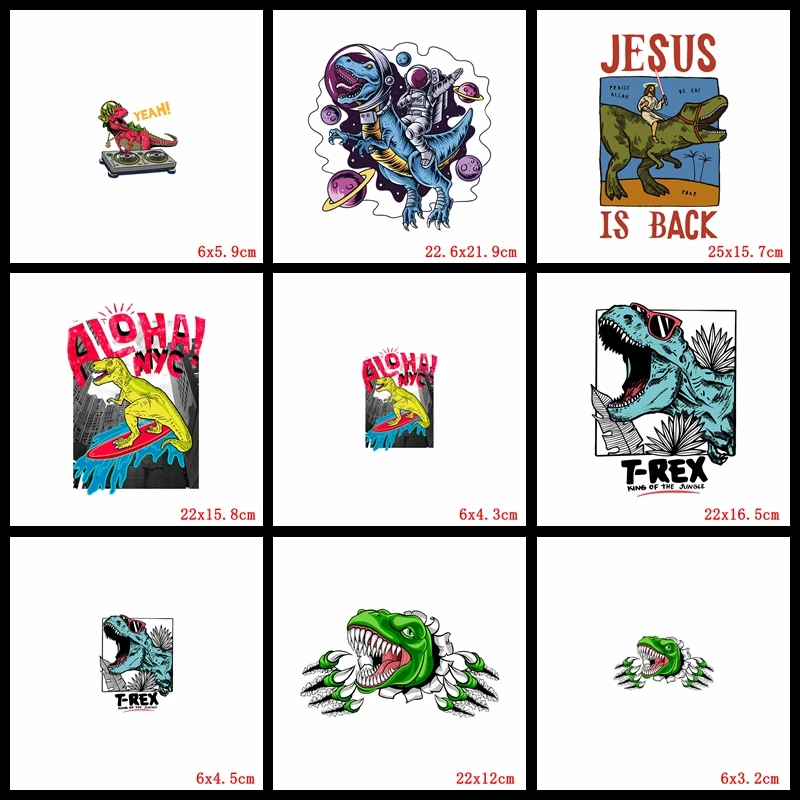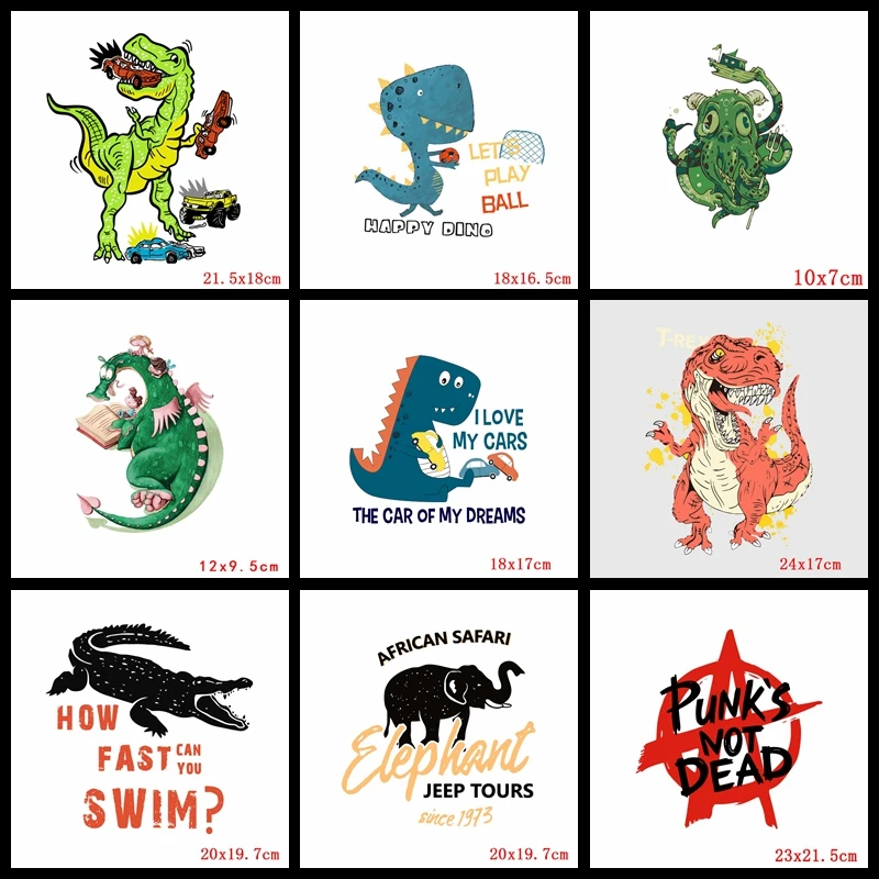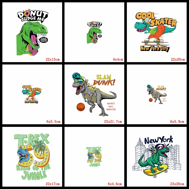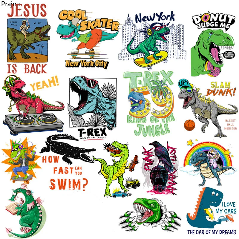 Prajna-Transferencia Térmica de dinosaurio para ropa, parches de transferencia de calor para apliques de ropa, dibujos animados DIY