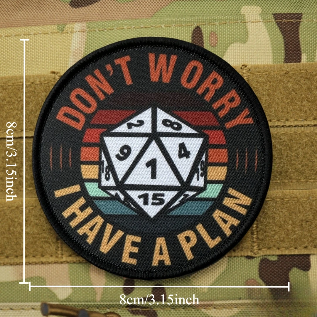 No te preocupes, tengo un plan, parche táctico moral impreso, apliques, dados militares, parches de gancho y bucle, pegatinas personalizadas para mochila