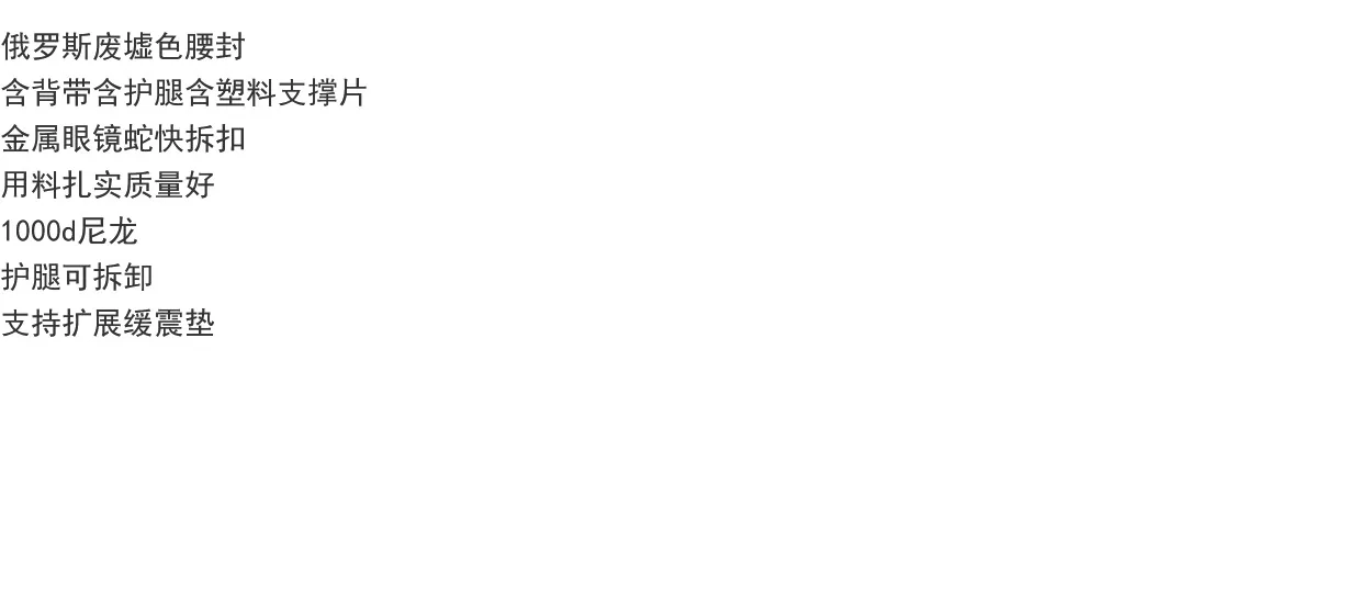 Pretina de ruinas rusas con correa para el hombro, calentadores de piernas, placa protectora