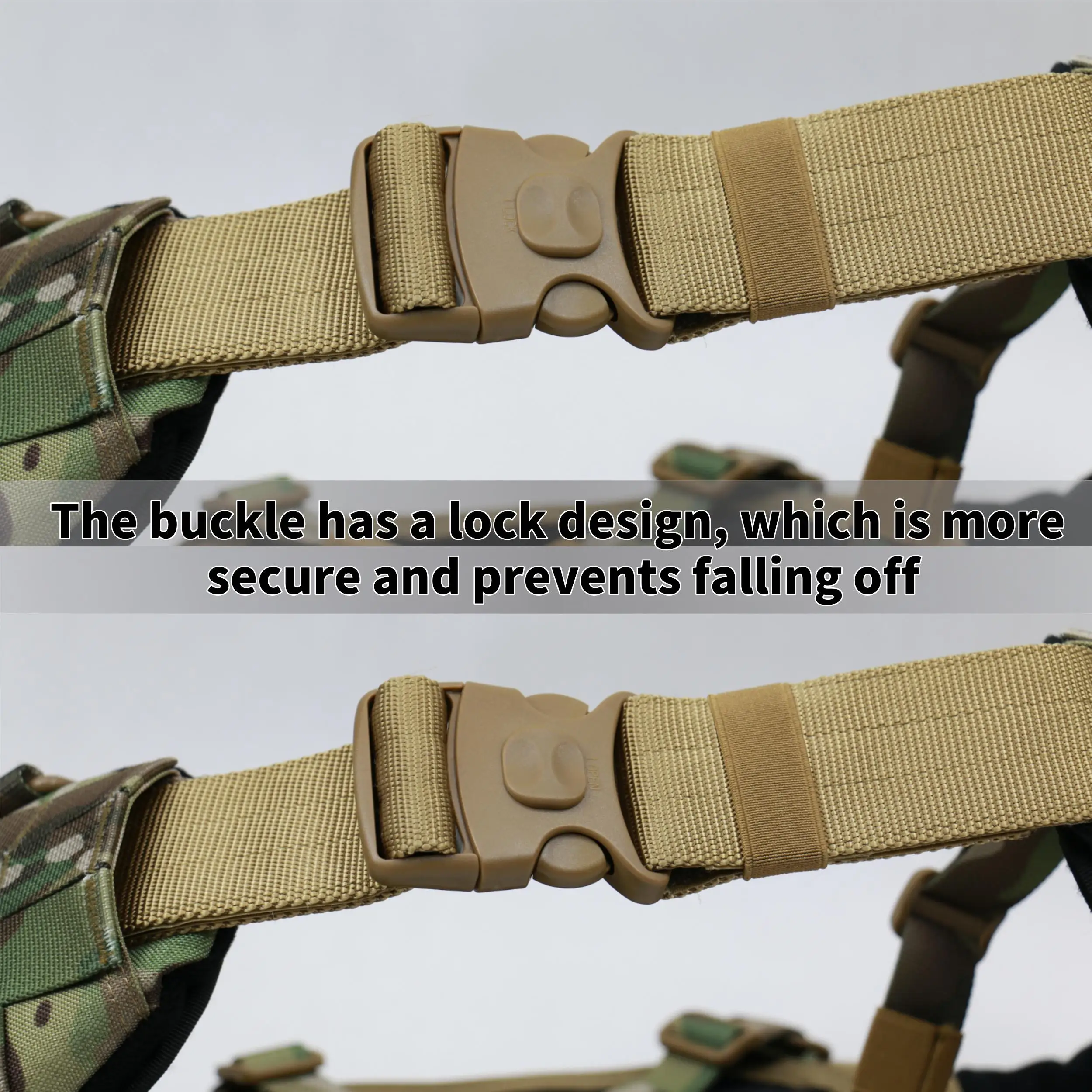 2.En la periferia se utilizan correas MOLLE, que se pueden adaptar a más accesorios y equipos tácticos.