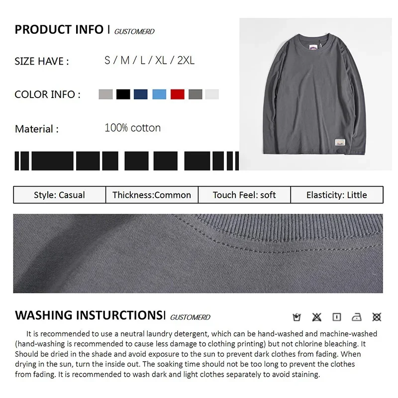 Primavera nuevo 2025 100% Camiseta de manga larga de algodón para hombre, camisetas sólidas de marca de verano para hombre, camisetas masculinas de alta calidad, camisetas clásicas para hombre