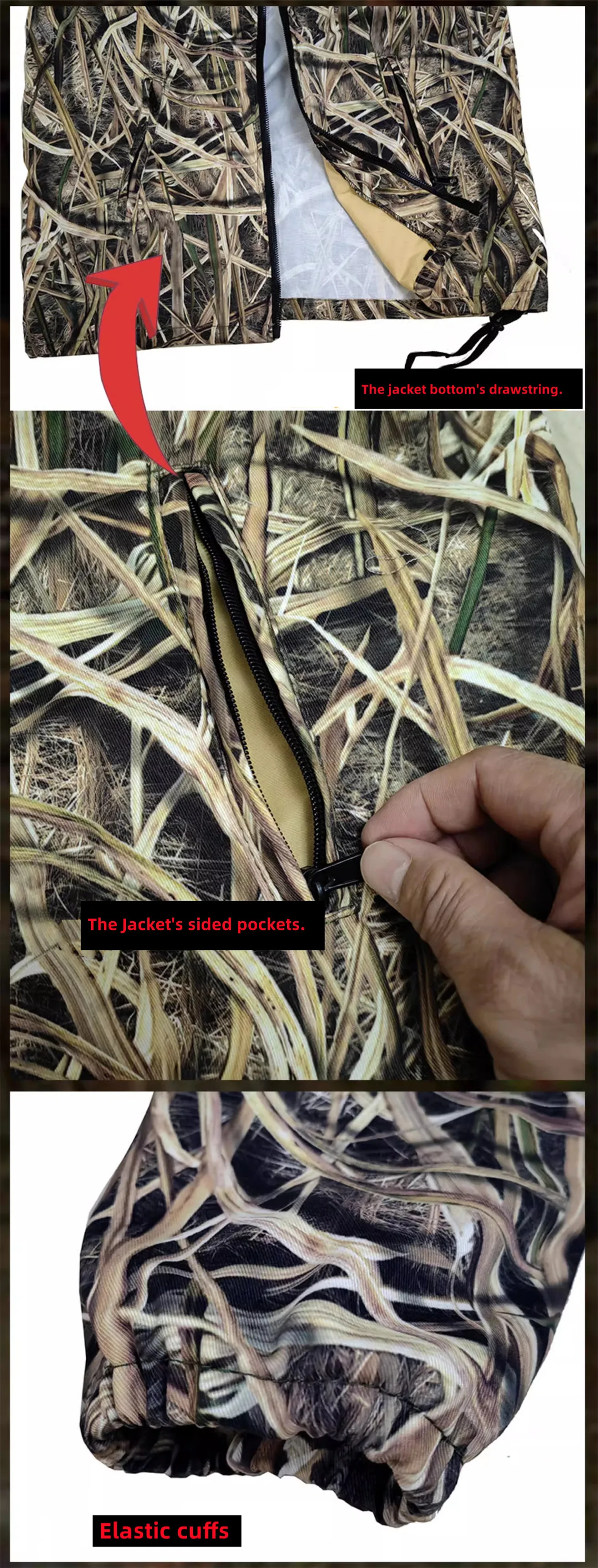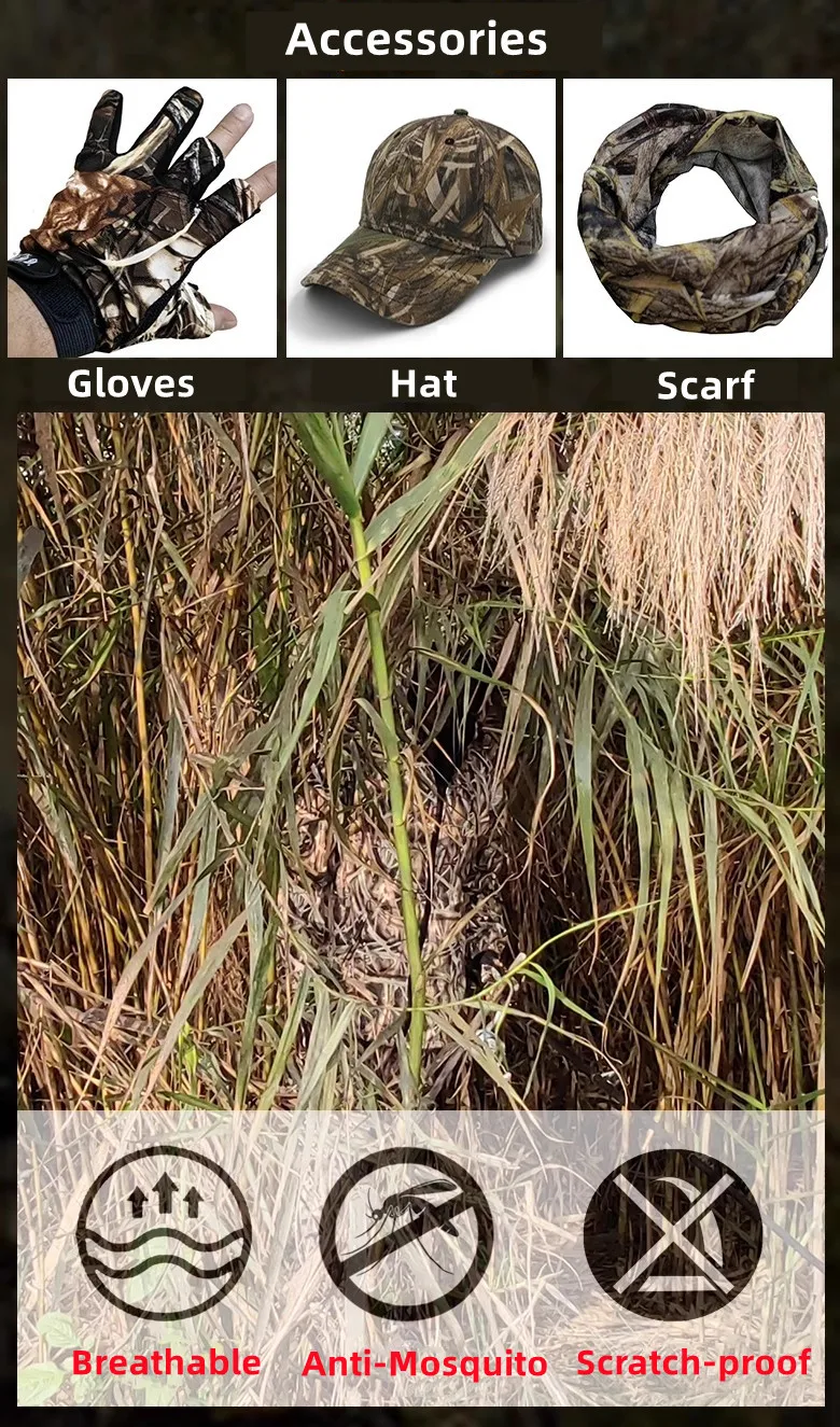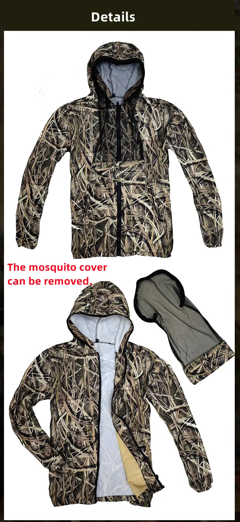 * Tejido totalmente de algodón de buena calidad, transpirable, cómodo y portátil.* Antimosquitos* Buen camuflaje, apto para caza, pesca, tiro...* Adecuado para primavera, otoño.