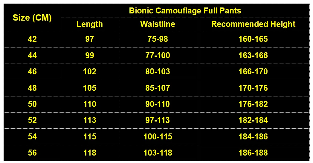 1 * Pantalones completos de camuflaje