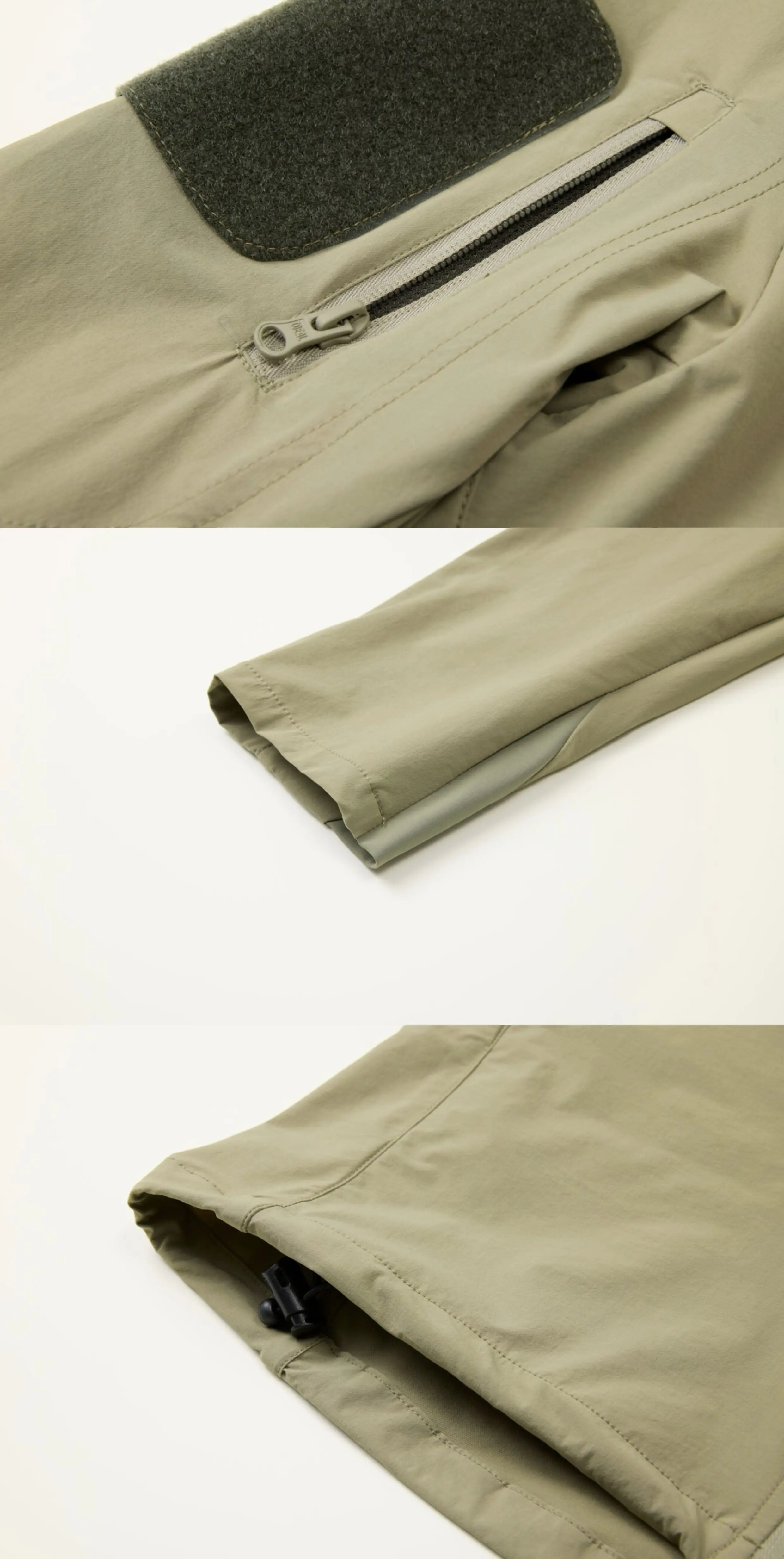 Primavera y otoño ligero que absorbe la humedad protector solar de secado rápido elástico de cuatro lados Multi bolsa chaqueta de concha suave