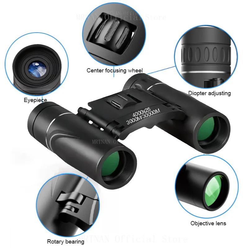 4000X25 Zoom Telescope Professional BAK4 HD Powerful Binoculars Long Range Portable Outdoor Folding FMC Binocular Camping Travel