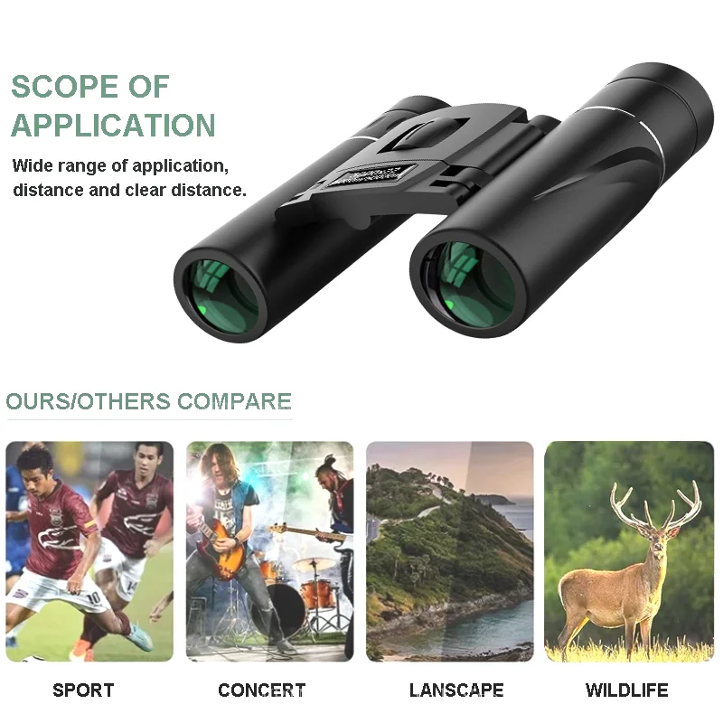 5.Ligero y compacto, bueno para acampar, hacer caminatas, conciertos, observar aves, cazar, viajar, jugar golf y eventos deportivos.