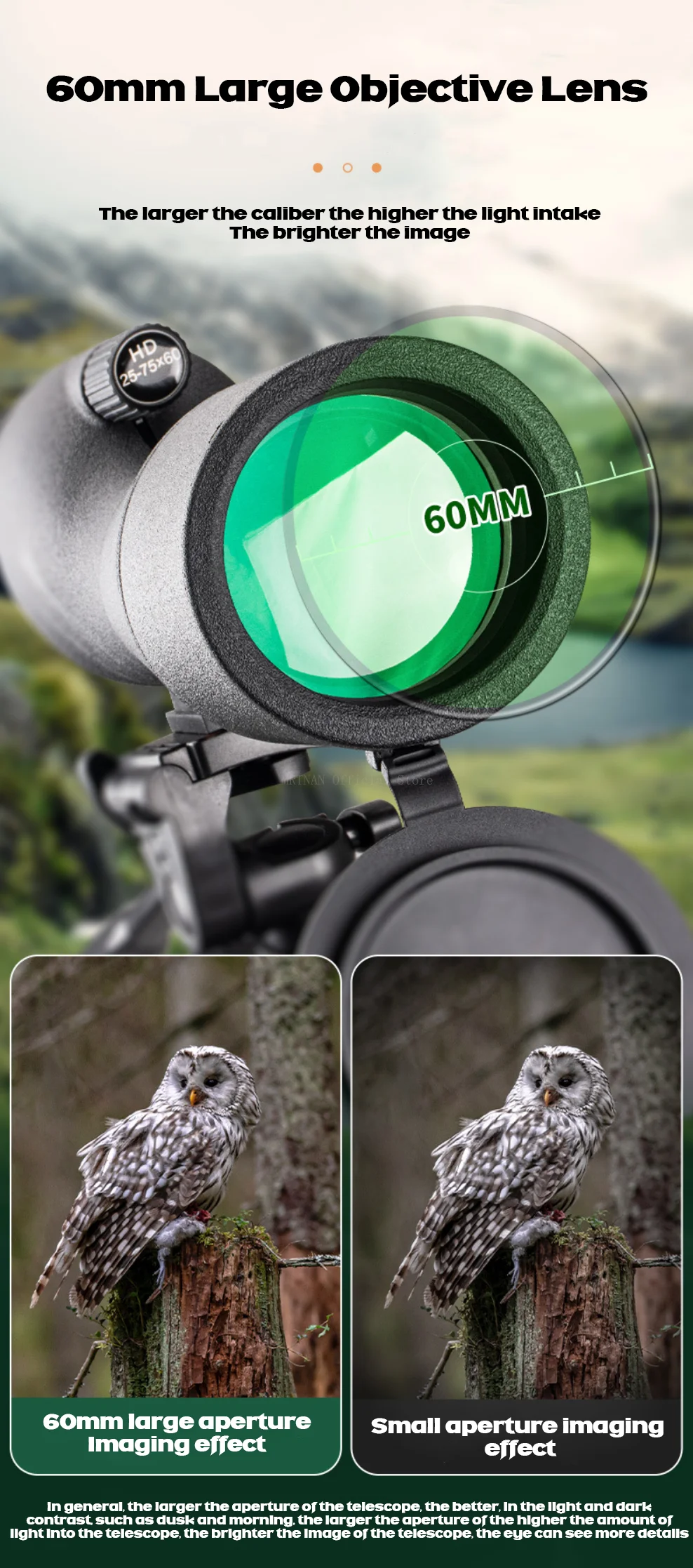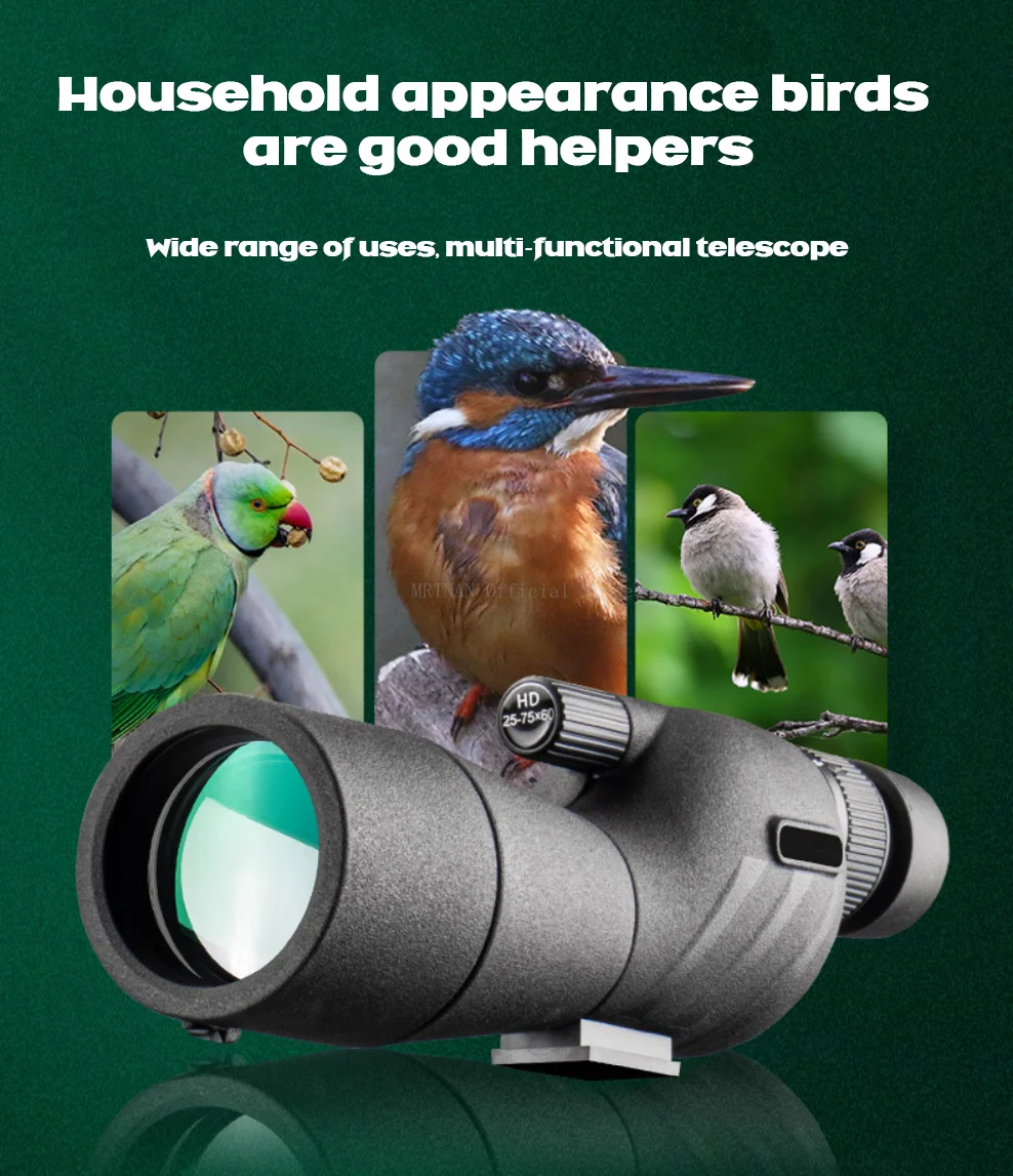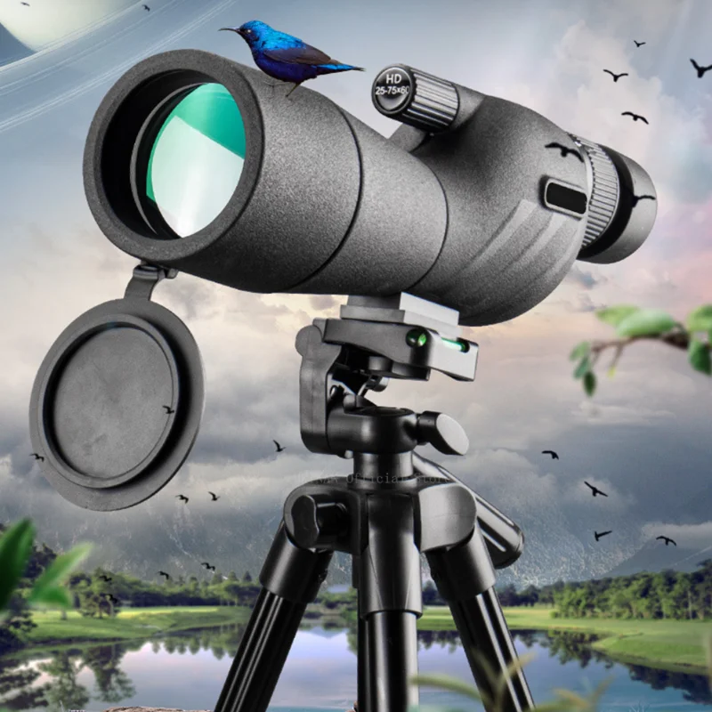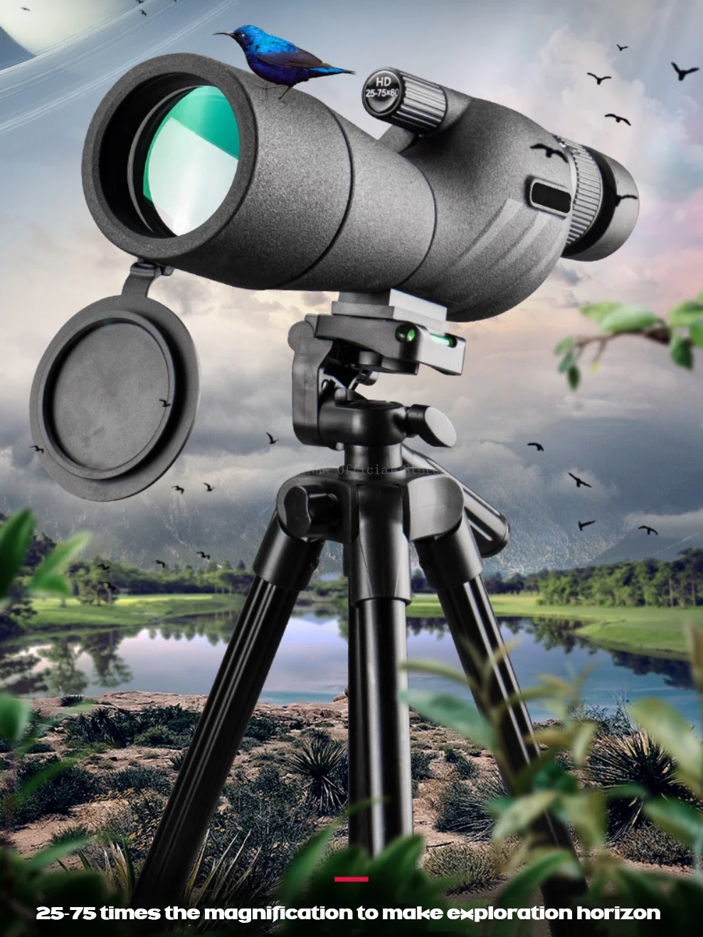 25-75x60 Potente HD Monoculares Zoom Telescopio Binoculares Bak4 Prisma con trípode Telescopio para observación de aves al aire libre