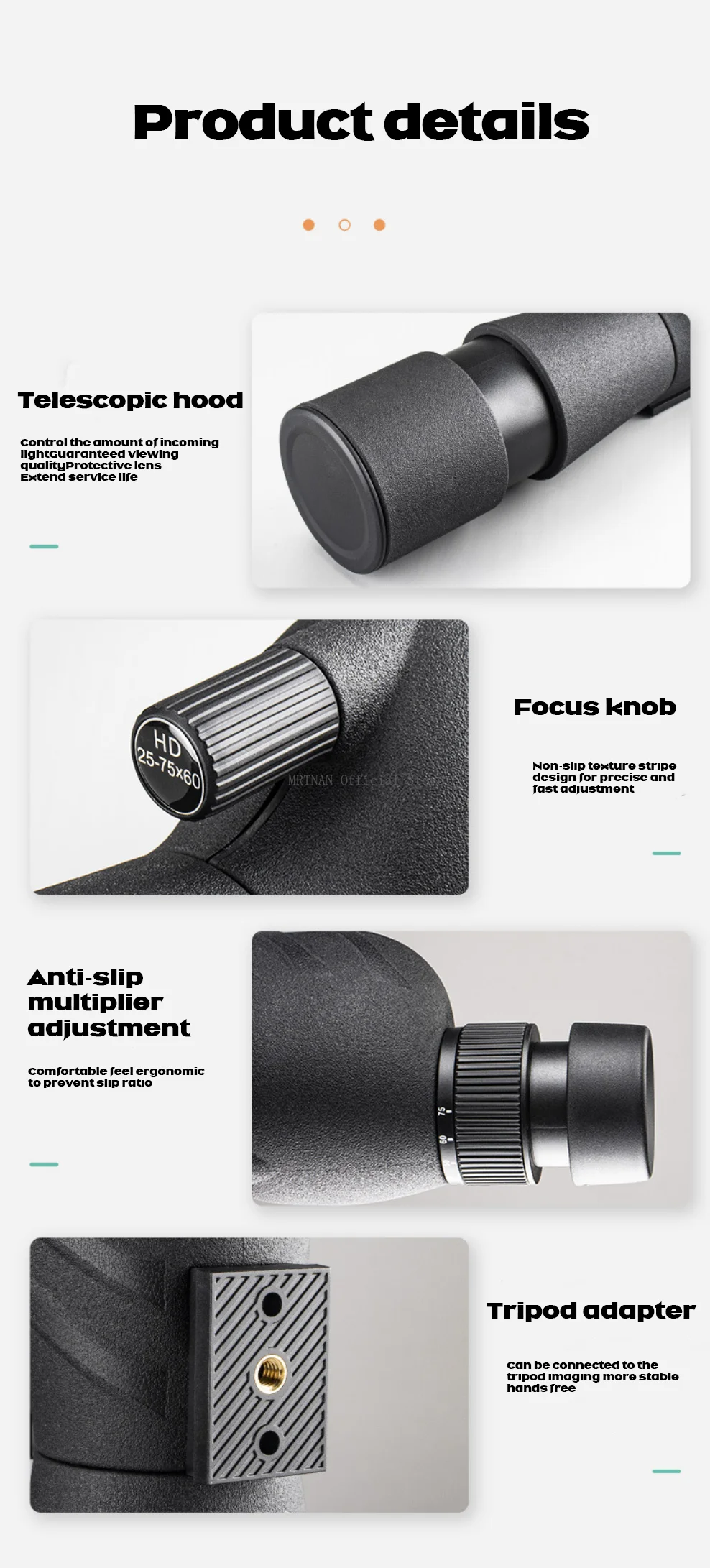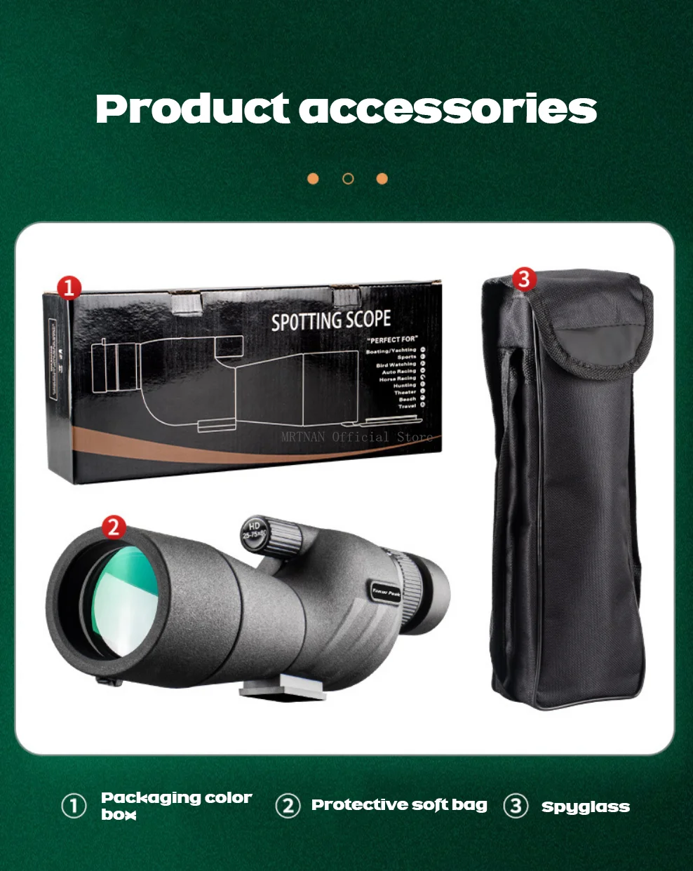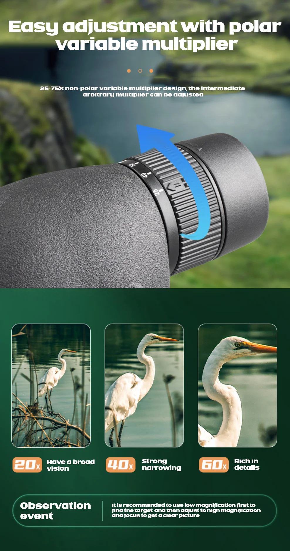 25-75x60 Potente HD Monoculares Zoom Telescopio Binoculares Bak4 Prisma con trípode Telescopio para observación de aves al aire libre