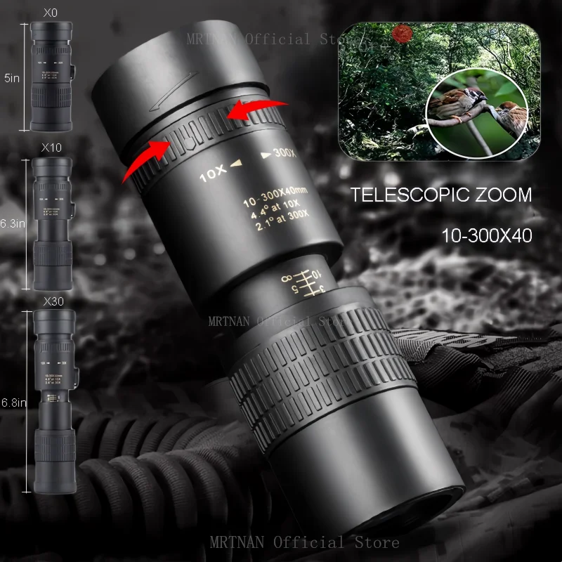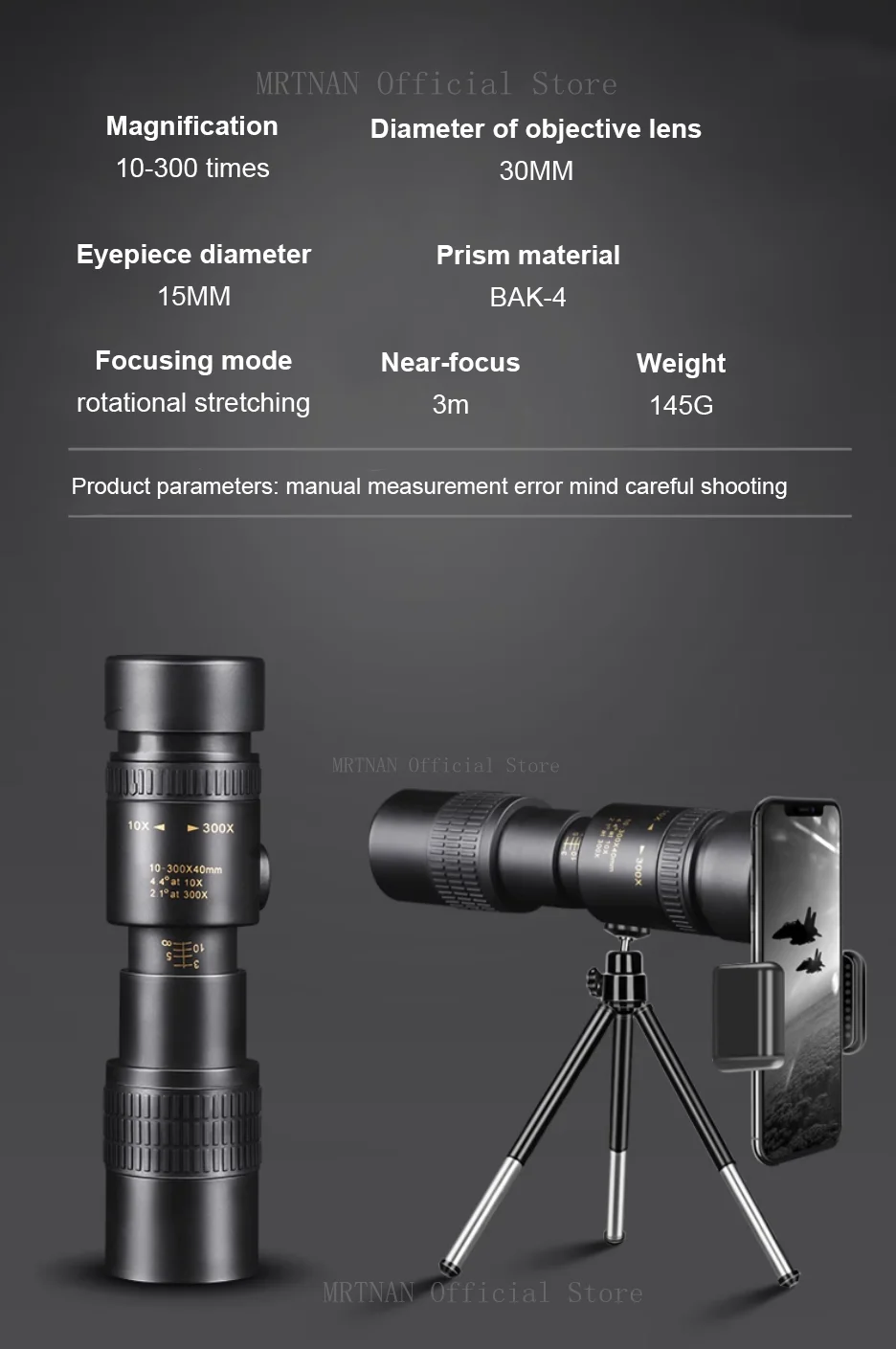 Zoom potente 10-300XMonocularProfesional de largo alcanceBinocularesTelescopio de alta calidad, portátil, para acampar
