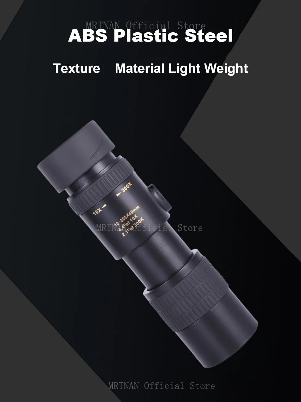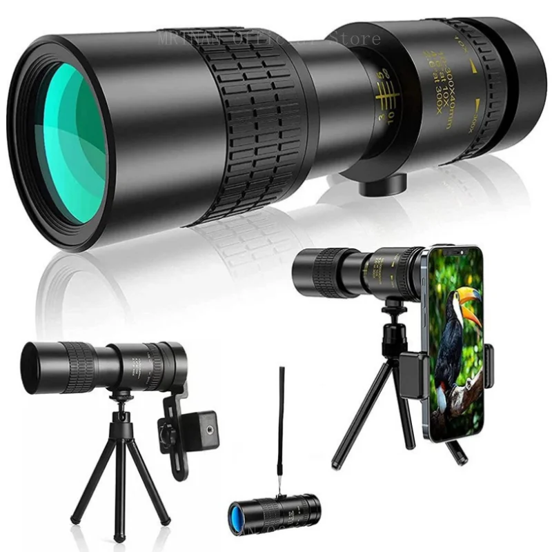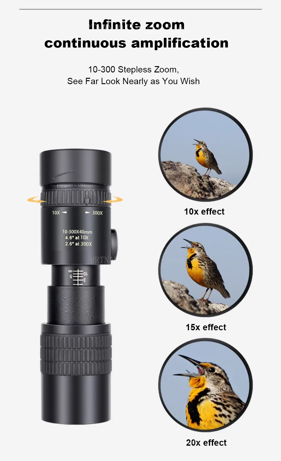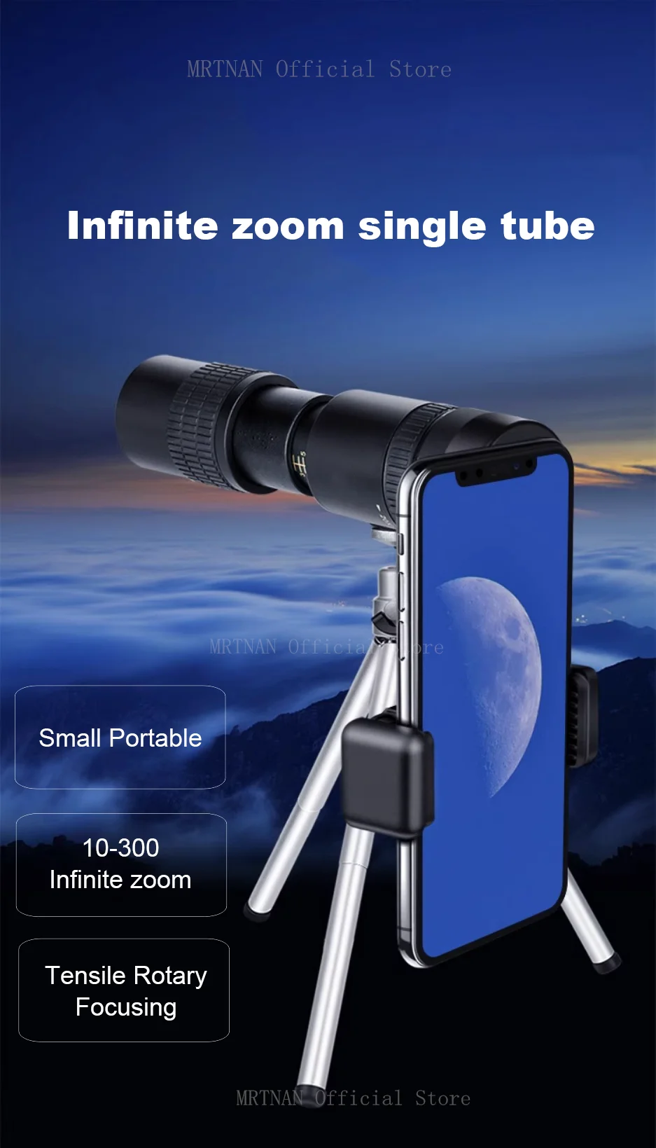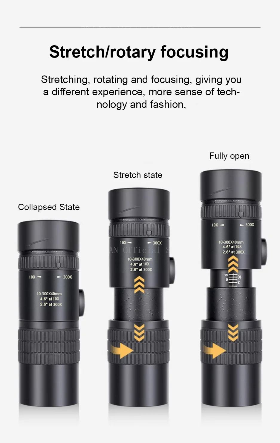 Potente telescopio monocular HD 10-300x40 Zoom de largo alcance con trípode Clip de teléfono para caza al aire libre Camping turismo