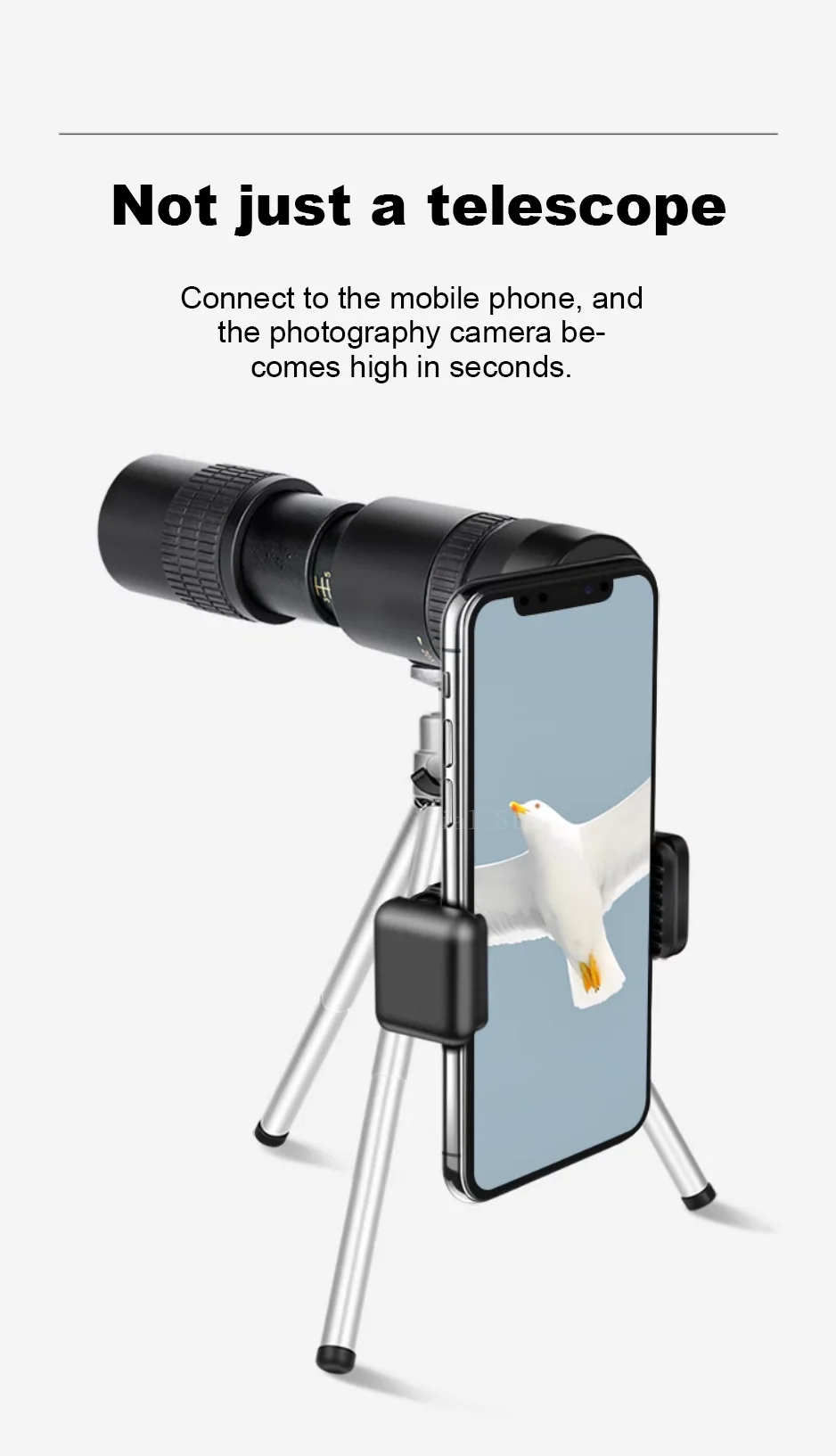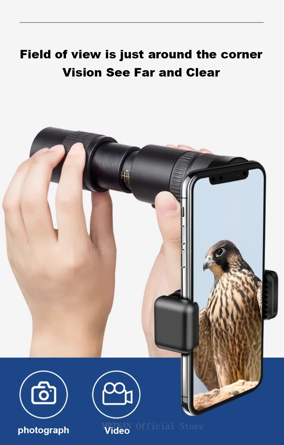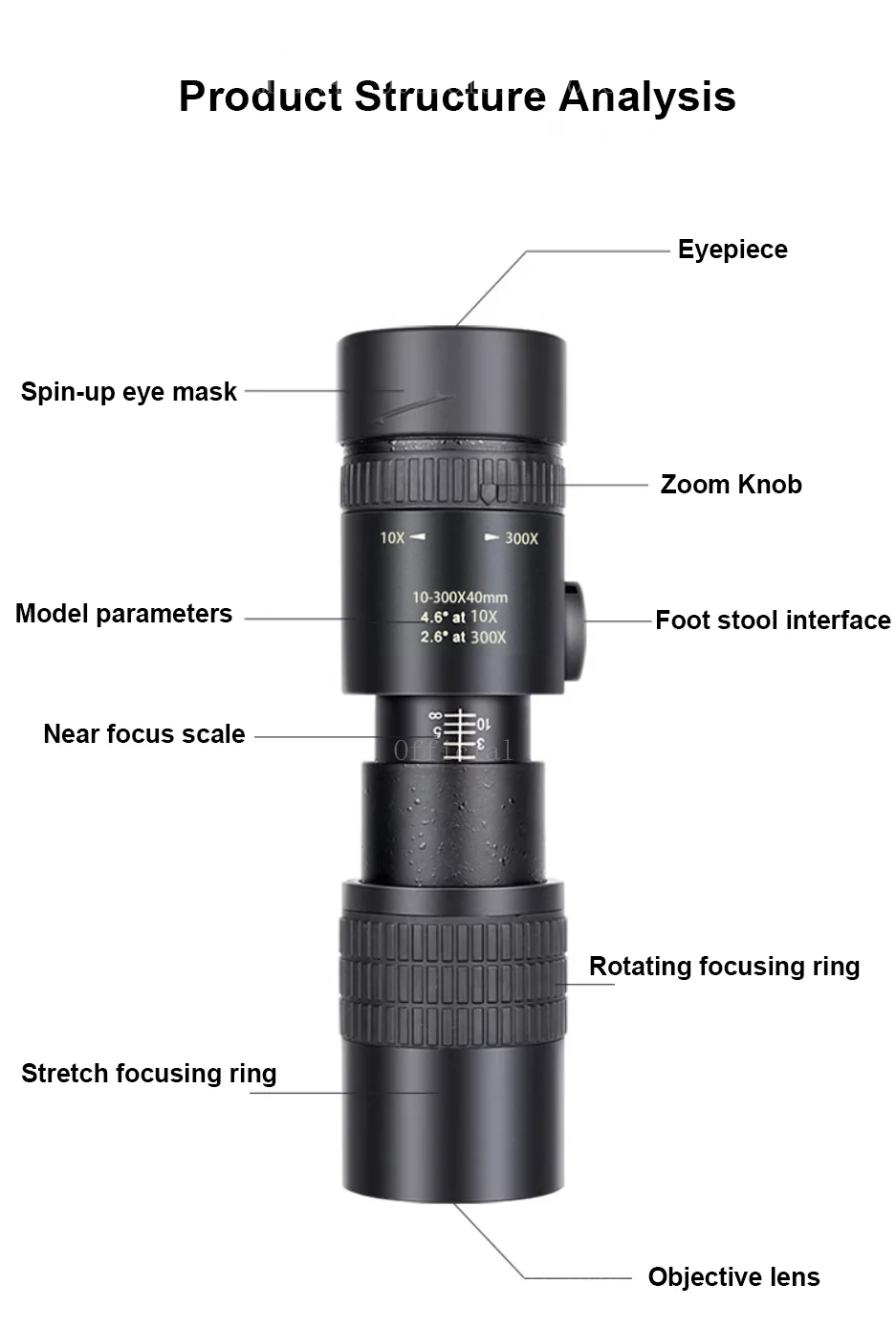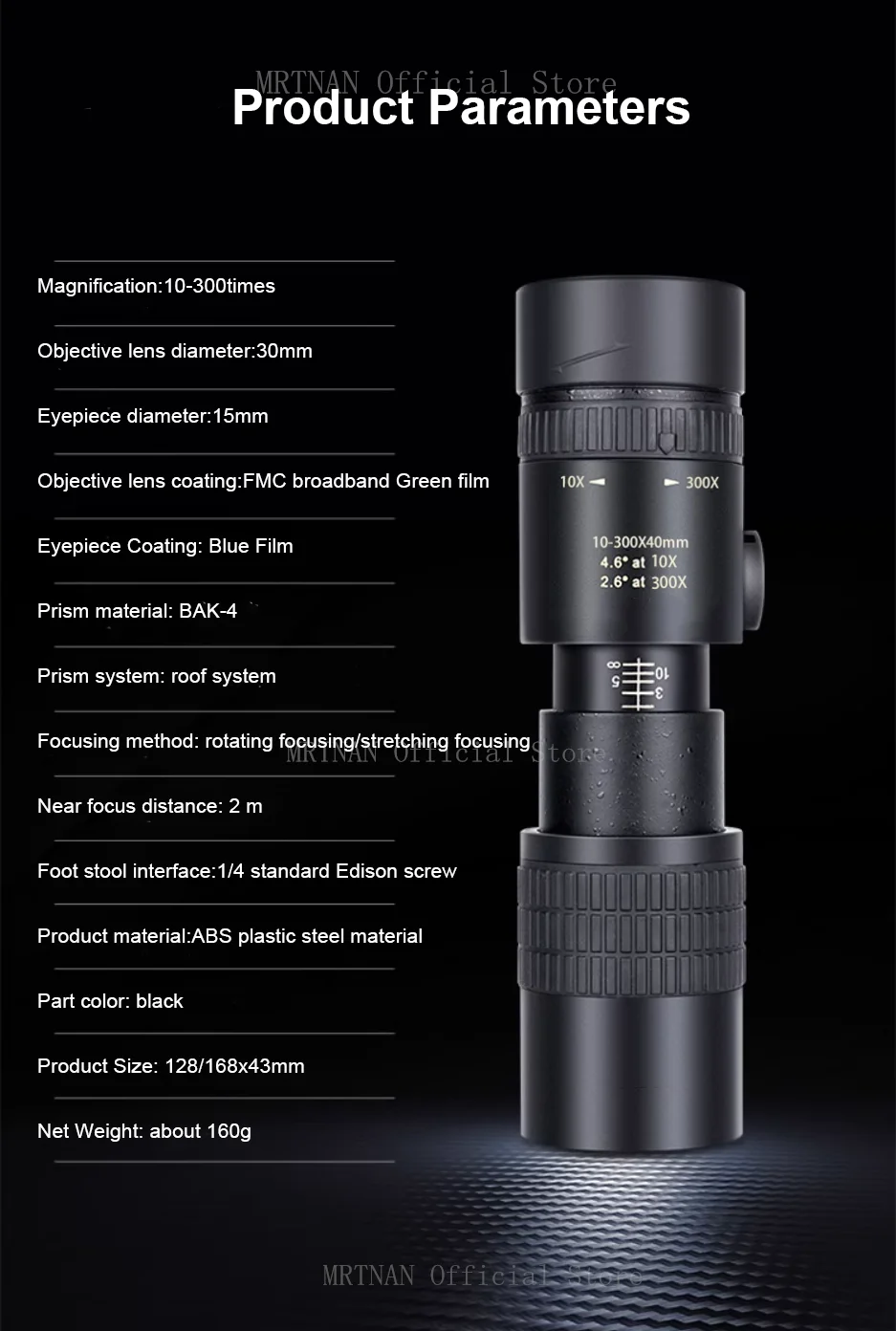 Potente telescopio monocular HD 10-300x40 Zoom de largo alcance con trípode Clip de teléfono para caza al aire libre Camping turismo