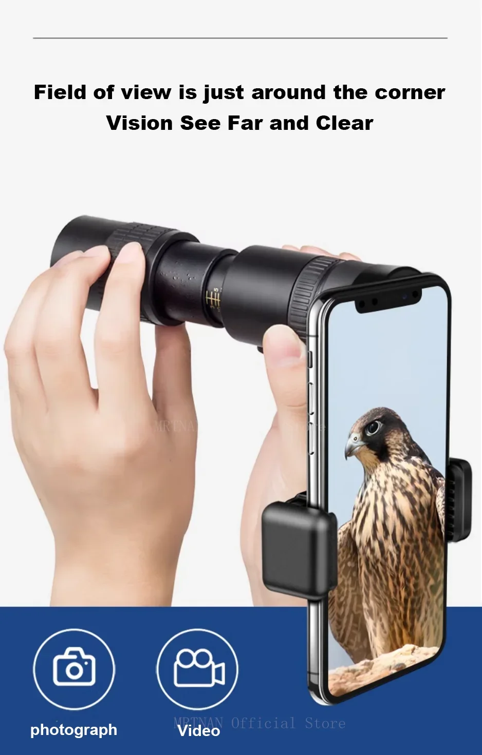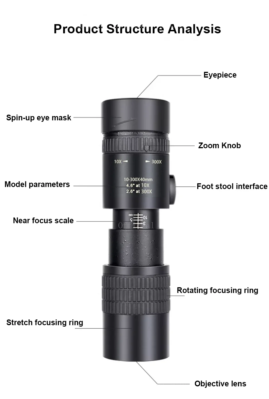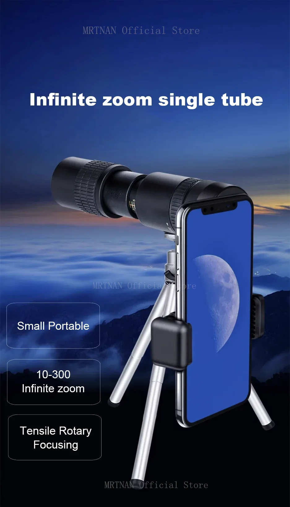 Potente telescopio monocular con Zoom 10-300X, telescopio monocular profesional remoto HD, prisma BAK4 de alta calidad, portátil para acampar