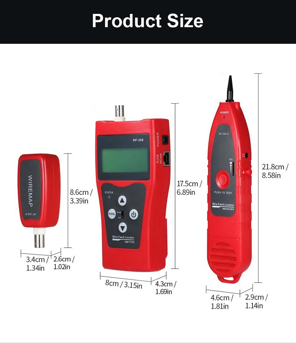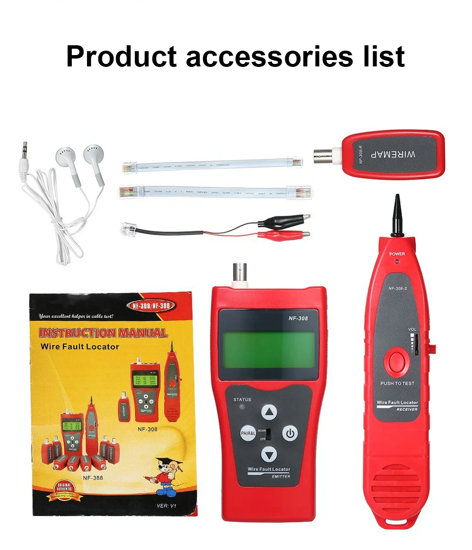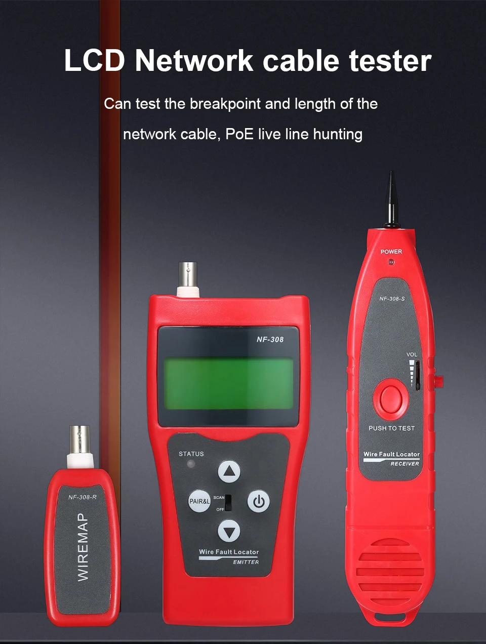Probador de Cable de monitoreo de red NF-308, localizador de fallas de Cable LCD, rastreador de Cable Ethernet RJ45 RJ11