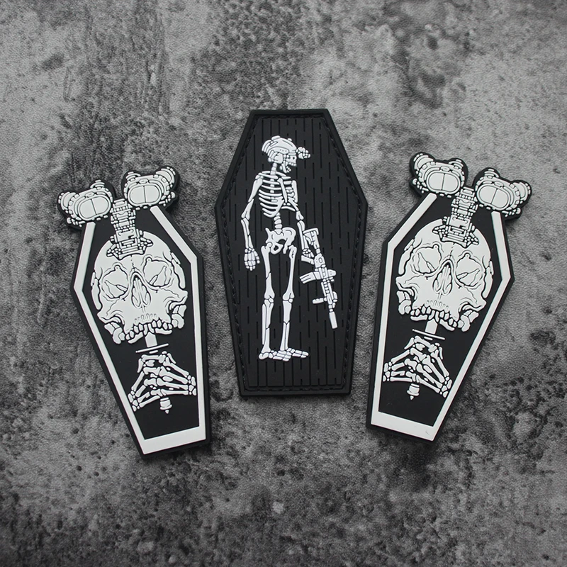 Projektmonark parches luminosos 3D de PVC, insignias tácticas para ropa, decoración de bolsas, armas de lucha de calavera caliente, brillo nocturno
