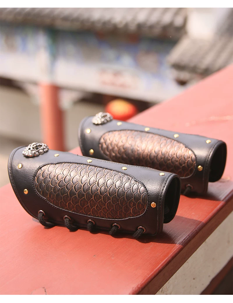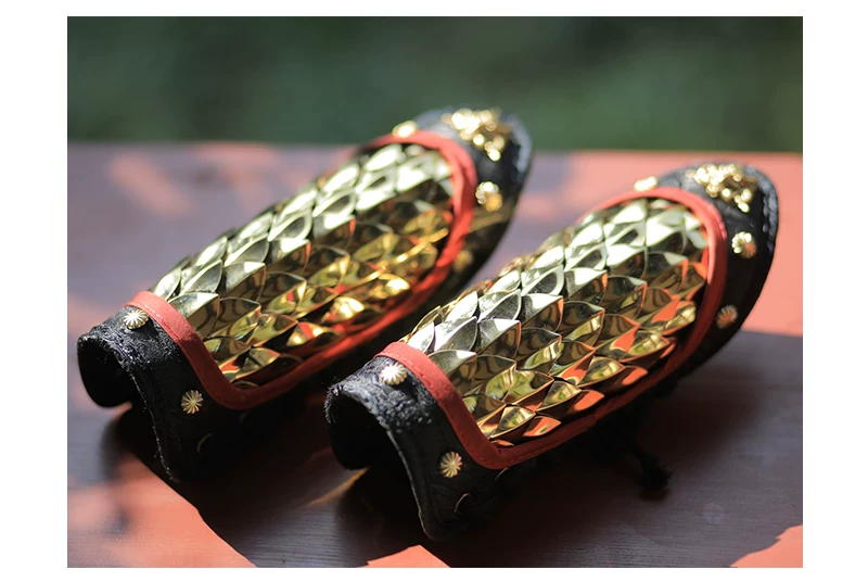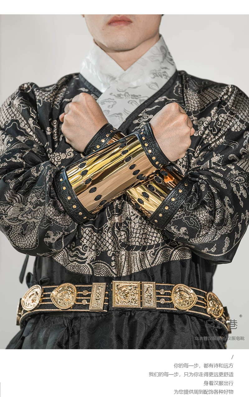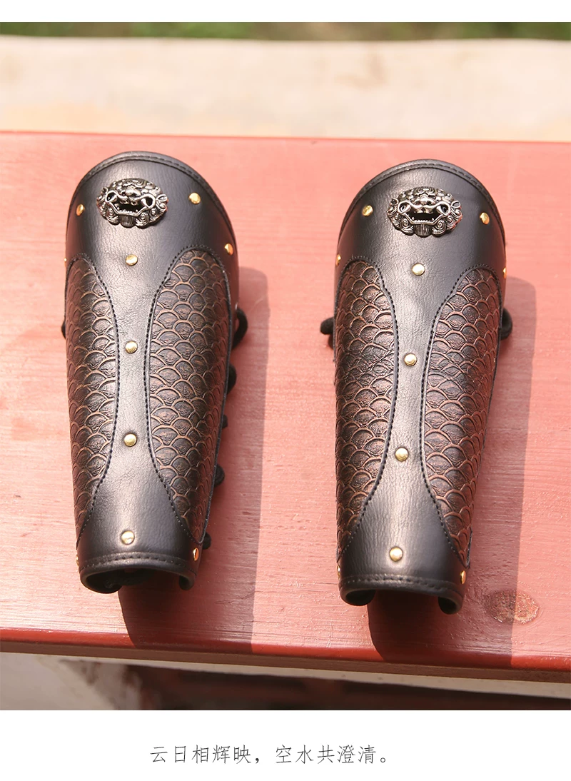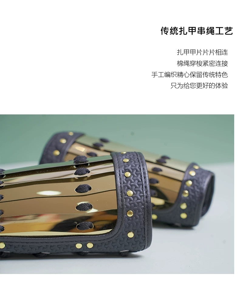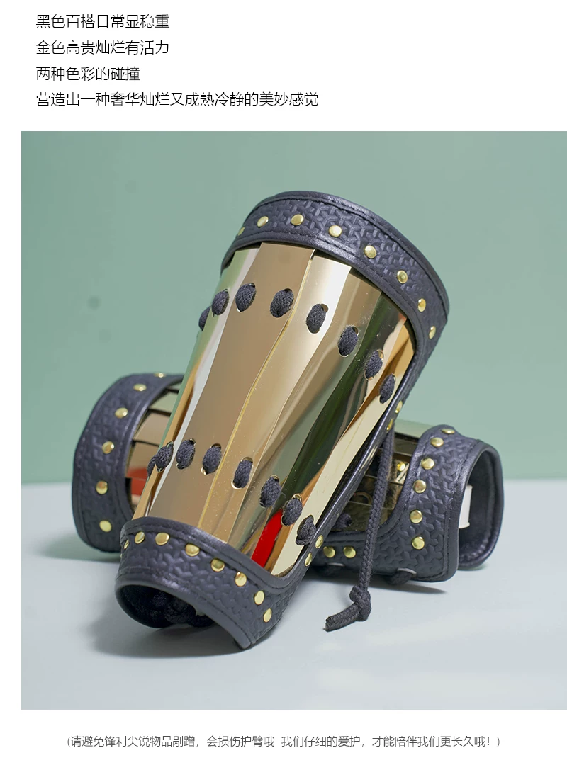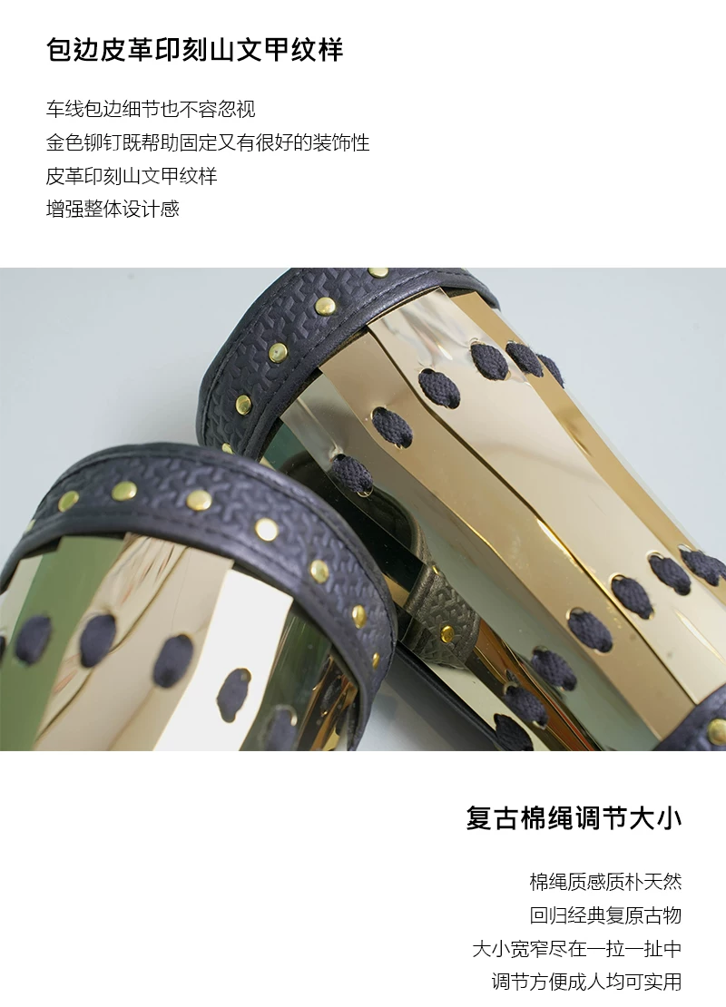 Protección de brazo al aire libre Armadura Hanfu Armadura dorada y plateada Protección de muñeca Protección de brazo de cuero dorado