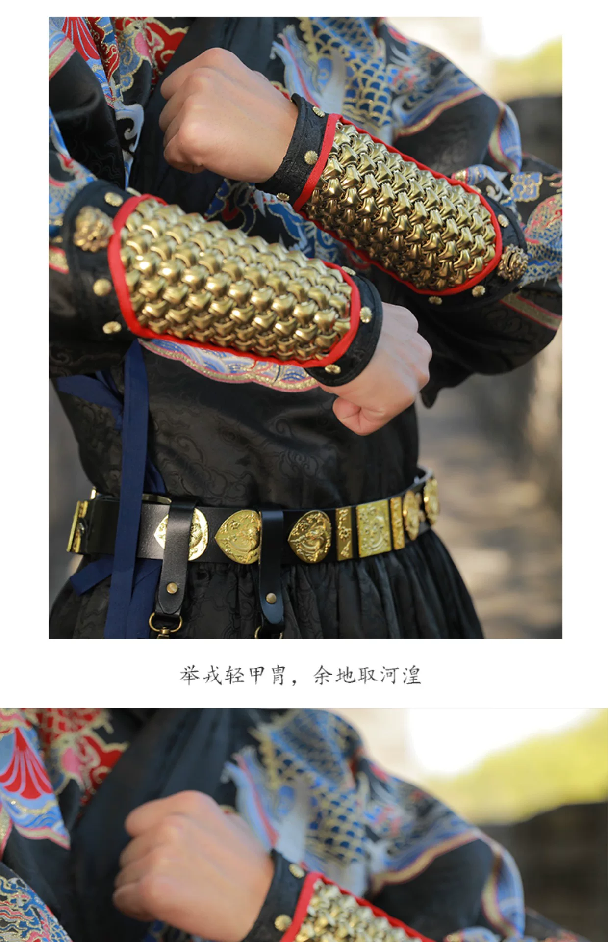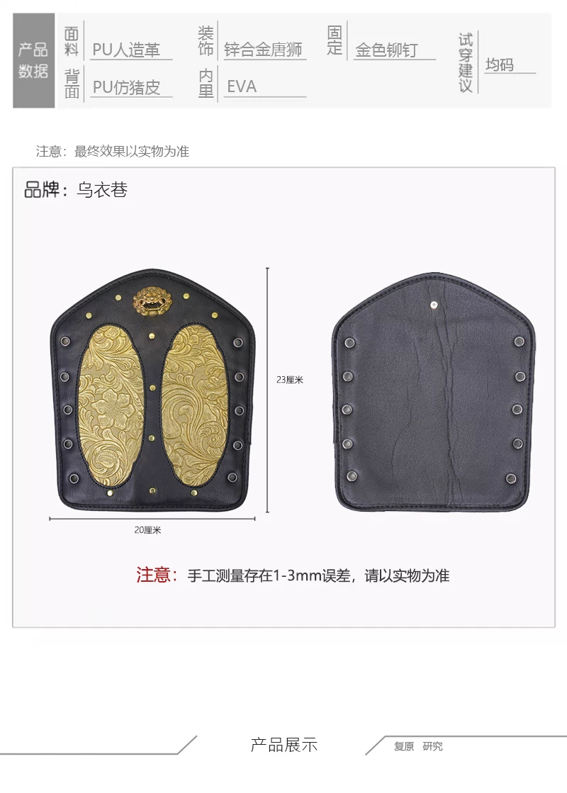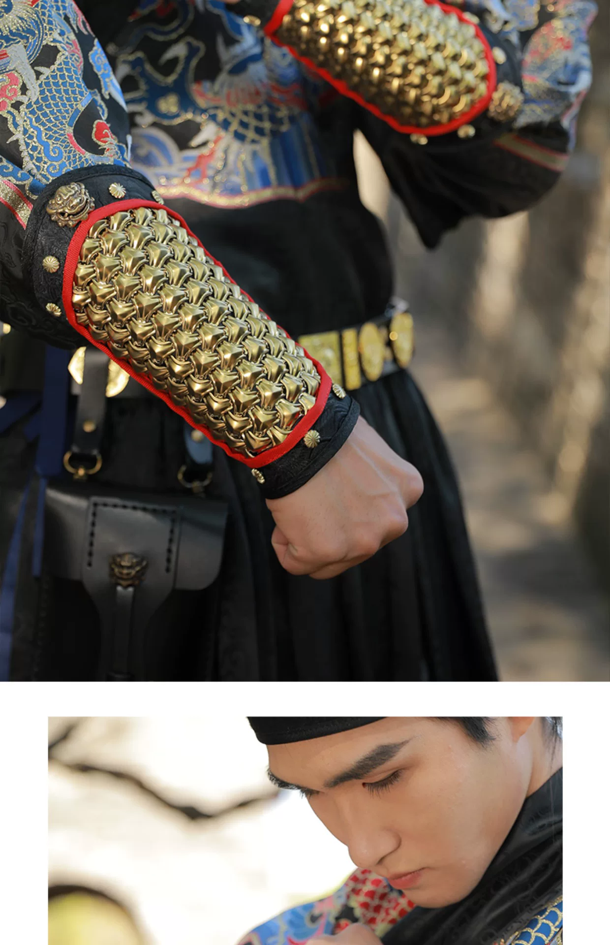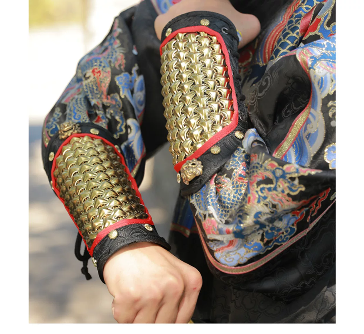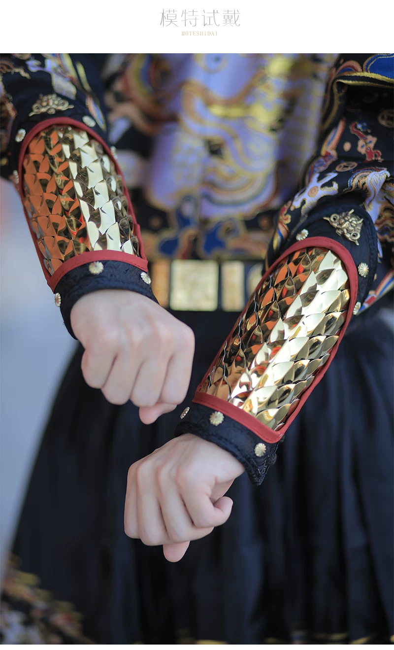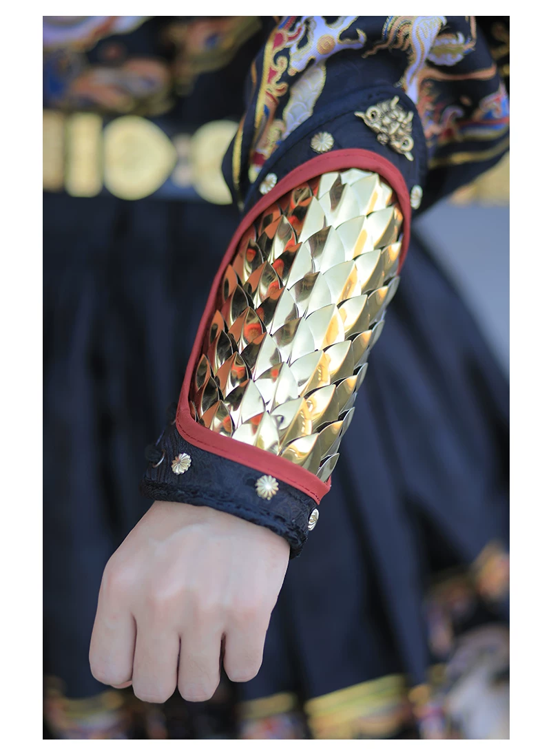 Protección de brazo al aire libre Armadura Hanfu Armadura dorada y plateada Protección de muñeca Protección de brazo de cuero dorado