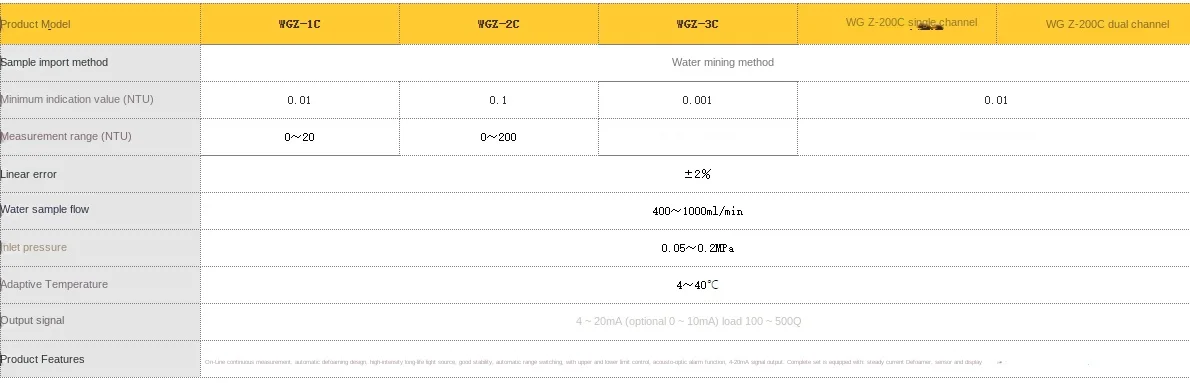 Detalles del producto y descripción general del uso: se utiliza para medir en línea el grado de dispersión de la luz generada por partículas insolubles suspendidas en agua o líquidos transparentes, y puede caracterizar cuantitativamente el contenido de estas partículas suspendidas.