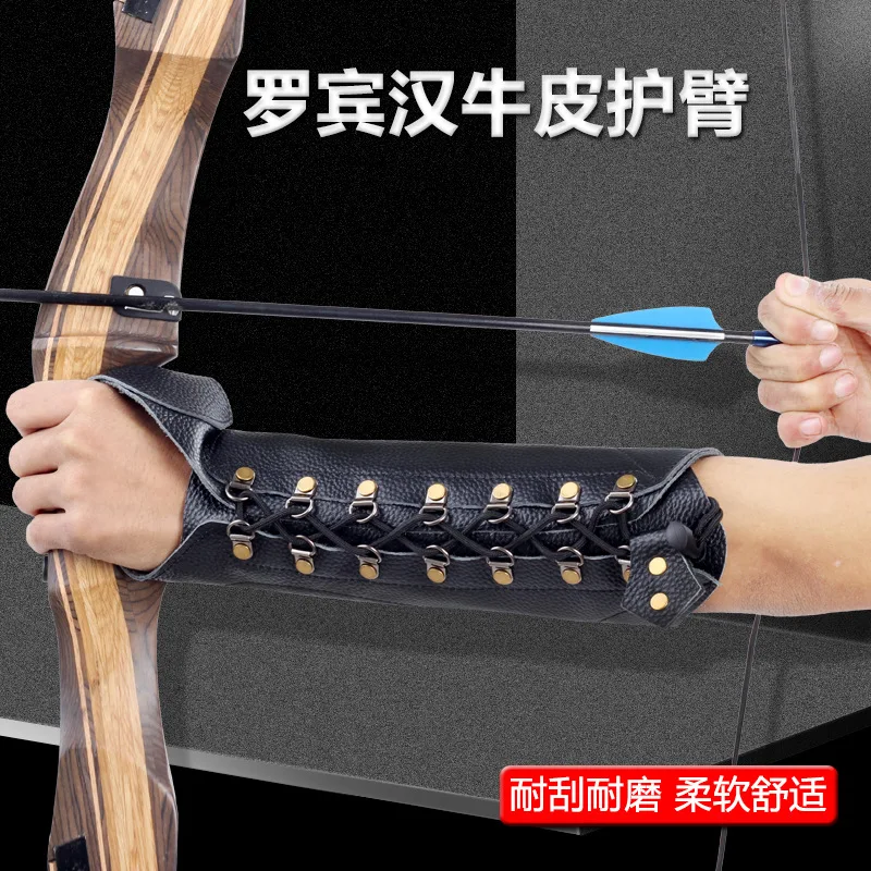 Arquería de caza arco recurvo Protector del brazo tire del arco proteger el brazo cuero de vaca tradicional Protector de sujeción del brazo