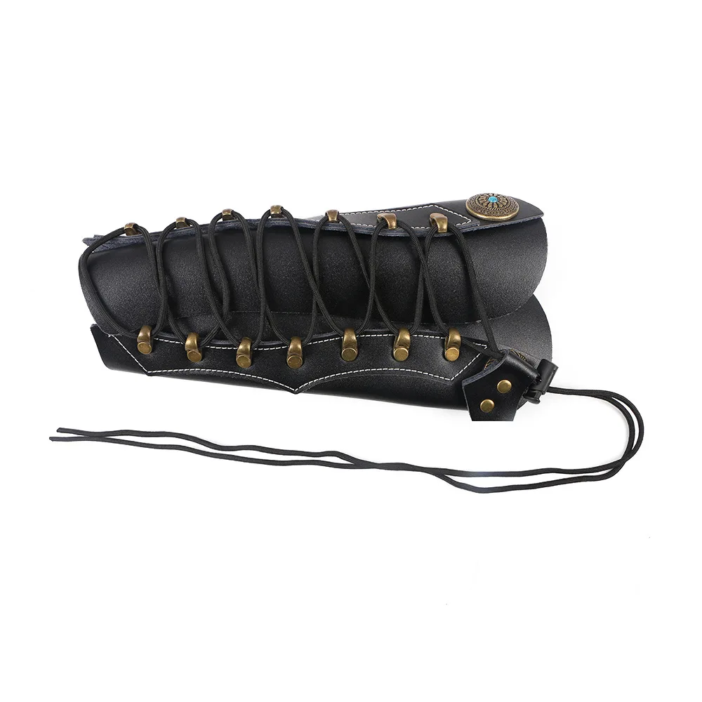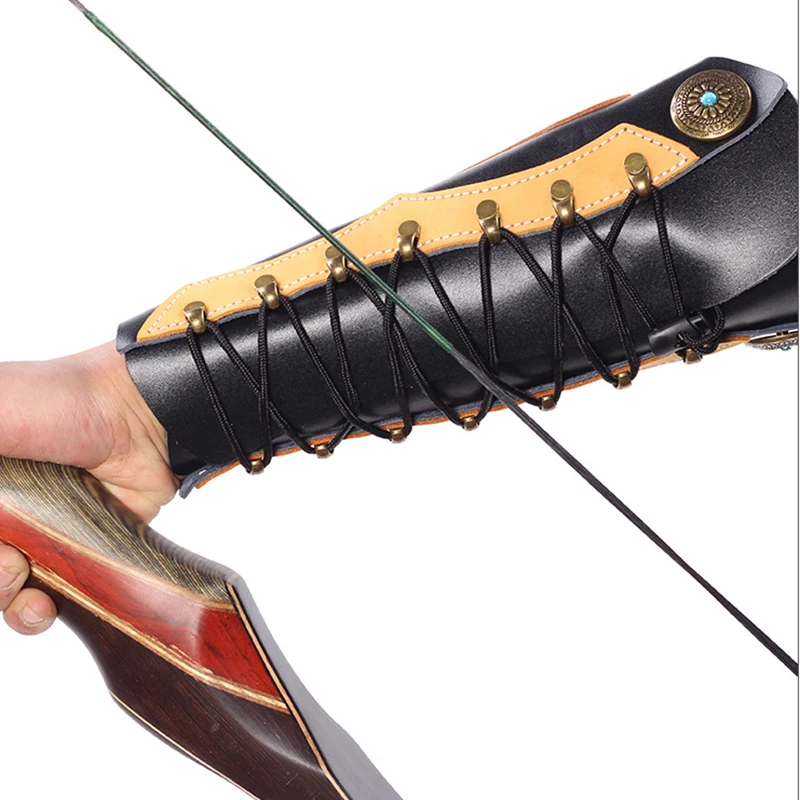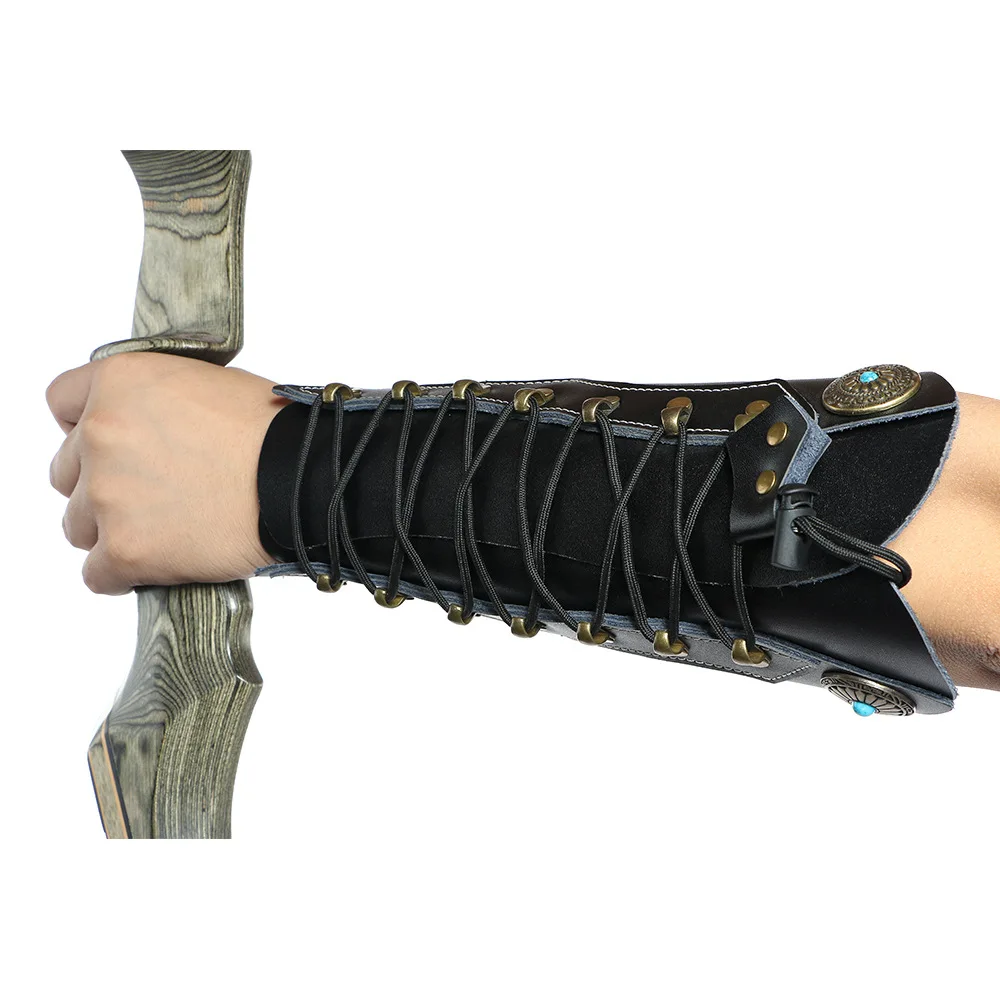 Protector de brazo de tiro con arco de piel de vaca tradicional, protector de mano para brazo de tiro con arco, equipo de protección ajustable para tiro con arco de caza