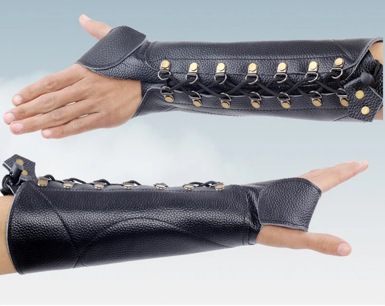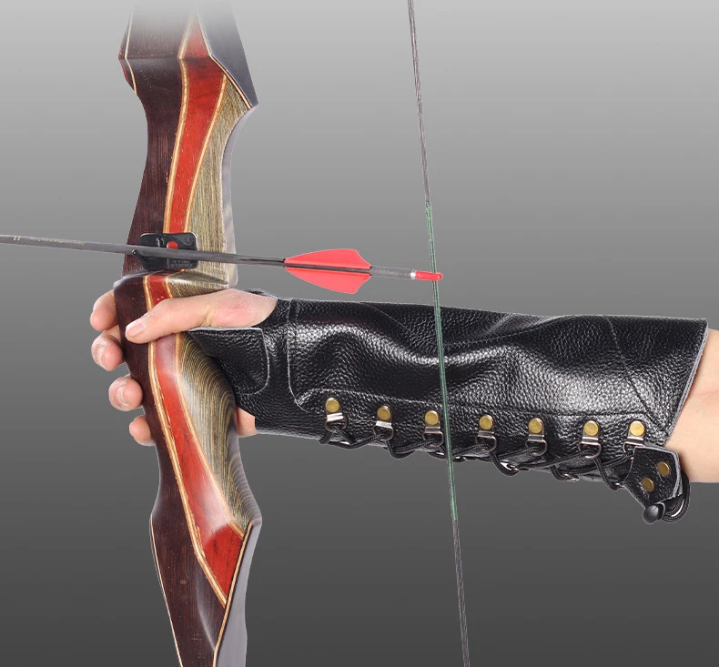 Protector de brazo de tiro con arco, protector de brazo de cuero con dedo, equipo de protección de tiro con arco con guardamanos, protector de brazo de tiro con arco de cuero de vaca superior, 1 ud.