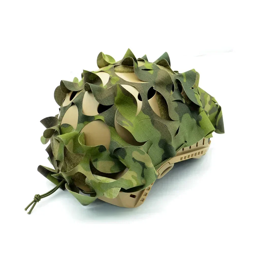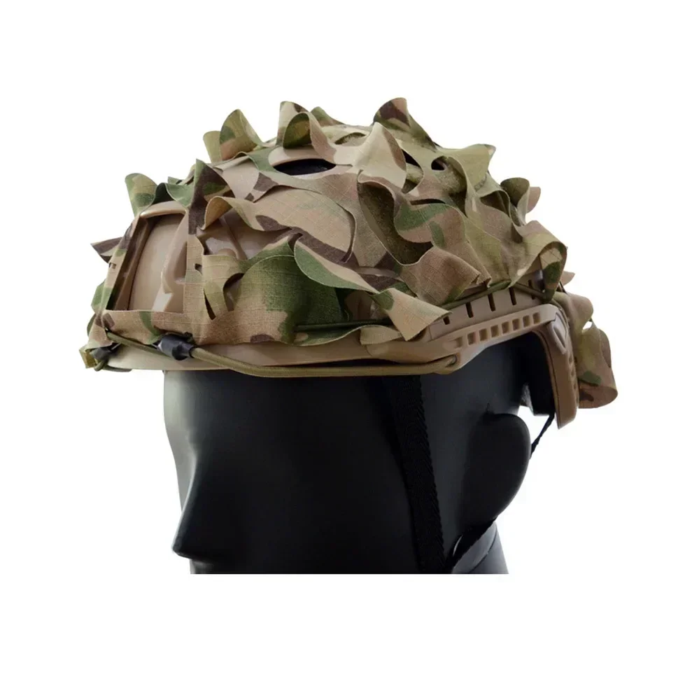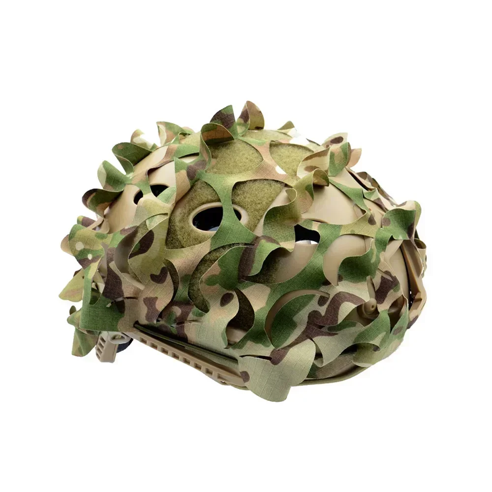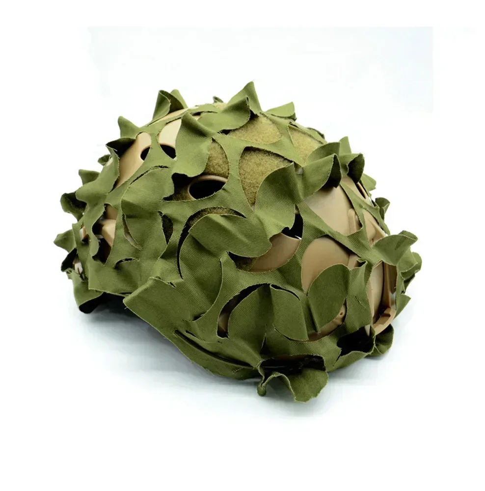 Características: 1.La funda del casco está cortada con láser 3D y formada en una sola pieza.Confeccionado en tejido de poliéster y algodón, transpirable, cómodo y más resistente al desgaste. 2.El diseño biónico le permite acercarse a la jungla exterior e integrarse en el entorno natural; se puede ocultar rápidamente. 3. Montaje sencillo: pase la banda elástica de la funda del casco a través del casco, engánchela al casco para fijarla y apriétela según sus preferencias.
